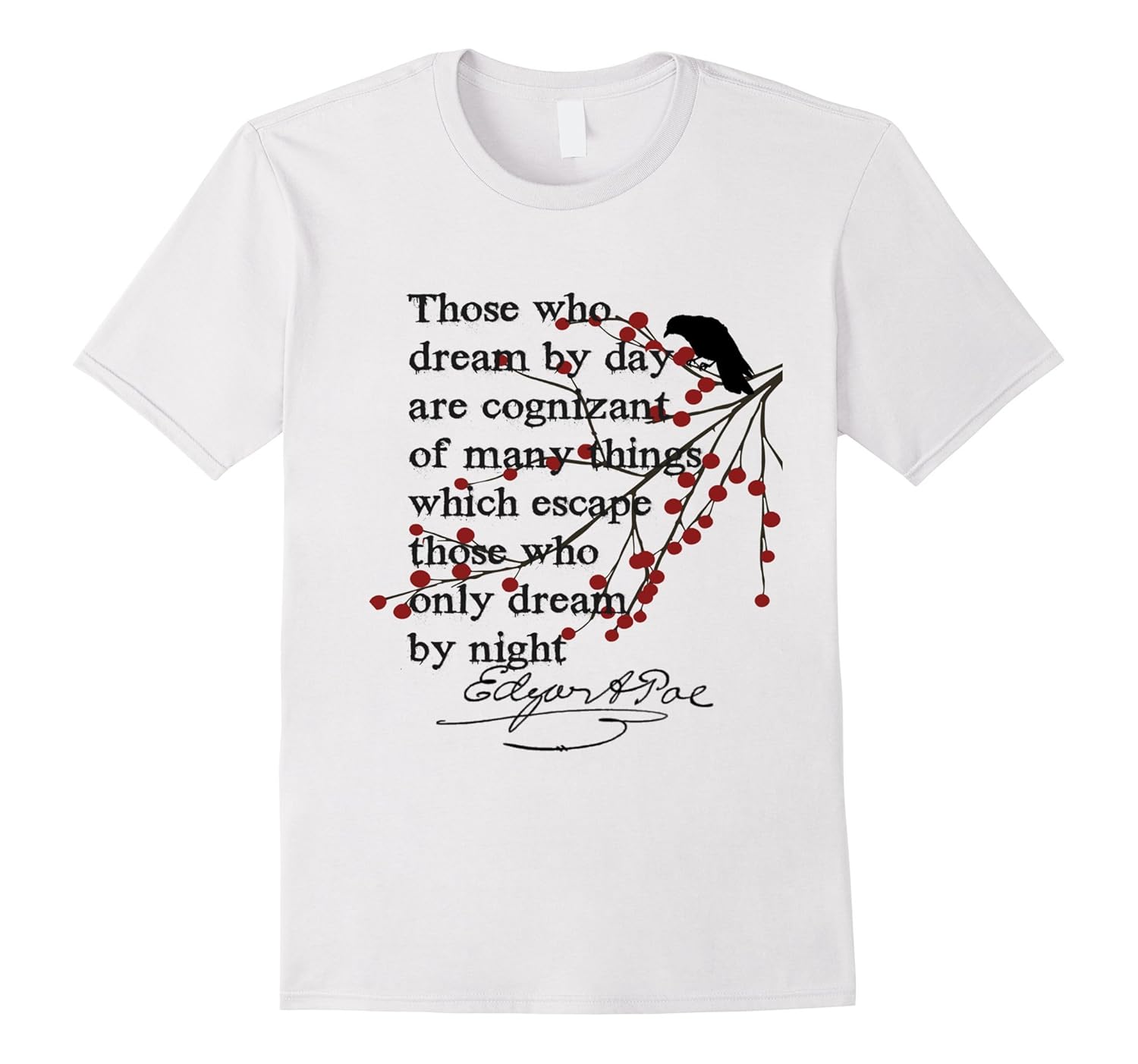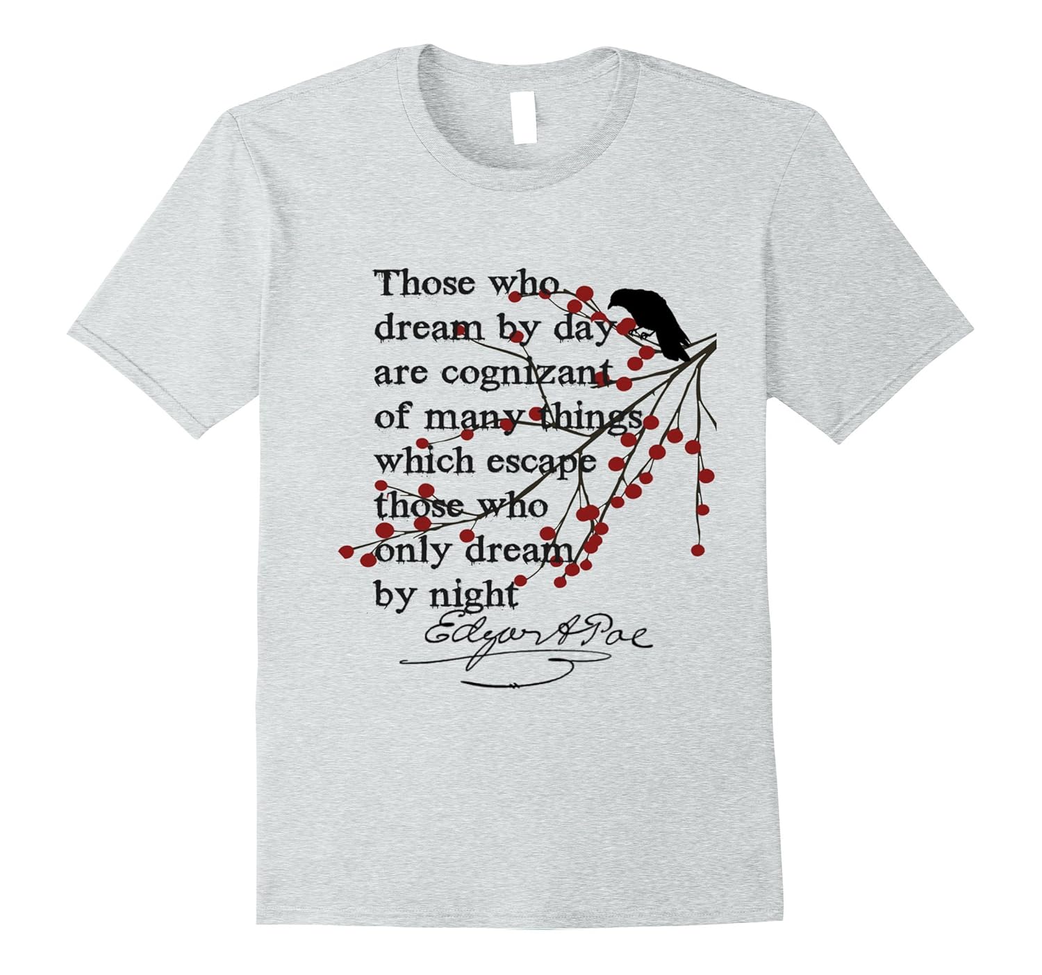 Solid colors: 100% Cotton; Heather Grey: 90% Cotton, 10% Polyester; All Other Heathers: 65% Cotton, 35% Polyester, Imported, Machine wash cold with like colors, dry low heat, Edgar Allan Poe t shirt for literary gift or English teacher gifts. Fit: Slim, so please size up one for a relaxed feel. Get this Poe quote t-shirt for all the bookworms in your life. Lightweight, Classic fit, Double-needle sleeve and bottom hem