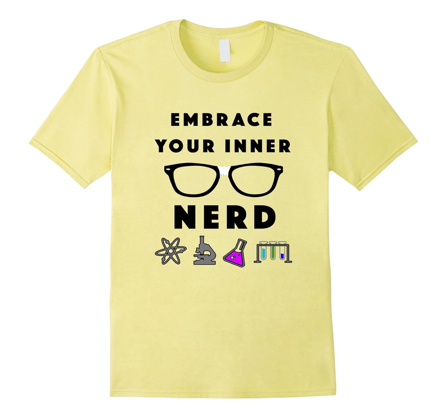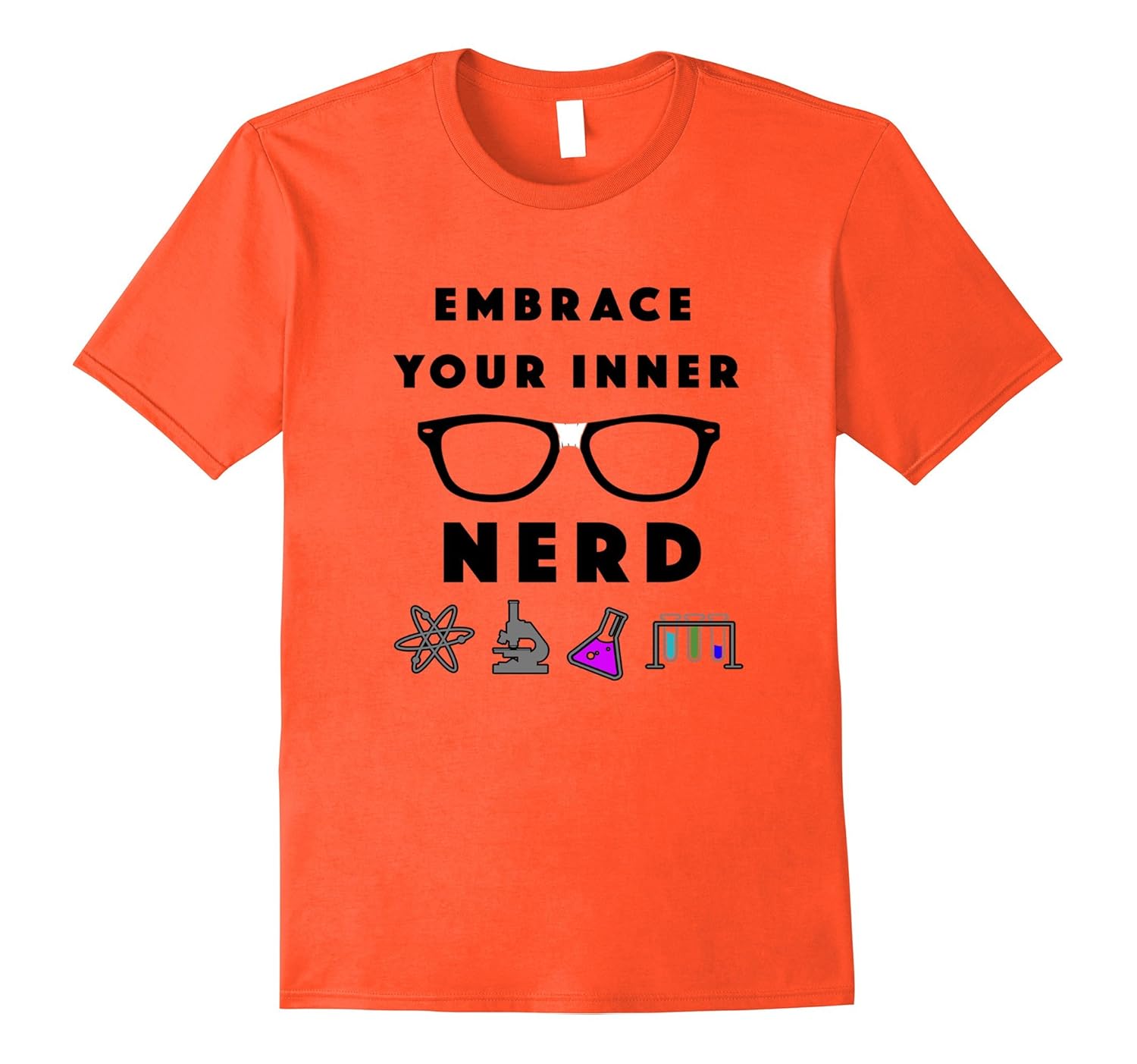 Solid colors: 100% Cotton; Heather Grey: 90% Cotton, 10% Polyester; All Other Heathers: 65% Cotton, 35% Polyester, Imported, Machine wash cold with like colors, dry low heat, This Embrace Your Inner Nerd T-Shirt is an awesome shirt for showing your love for science! Shirt features scientific graphics of an atom, microscope, beaker and test tubes on front. A perfect gift for graduating students, science geeks or inner nerds!, Wear your Embrace Your Inner Nerd tee to your science, computer or engineering lab, or simply for everyday wear. Show your pride in your unique love for science. These shirts are designed to be fitted. If you like a loose fit, please order a size up. Lightweight, Classic fit, Double-needle sleeve and bottom hem