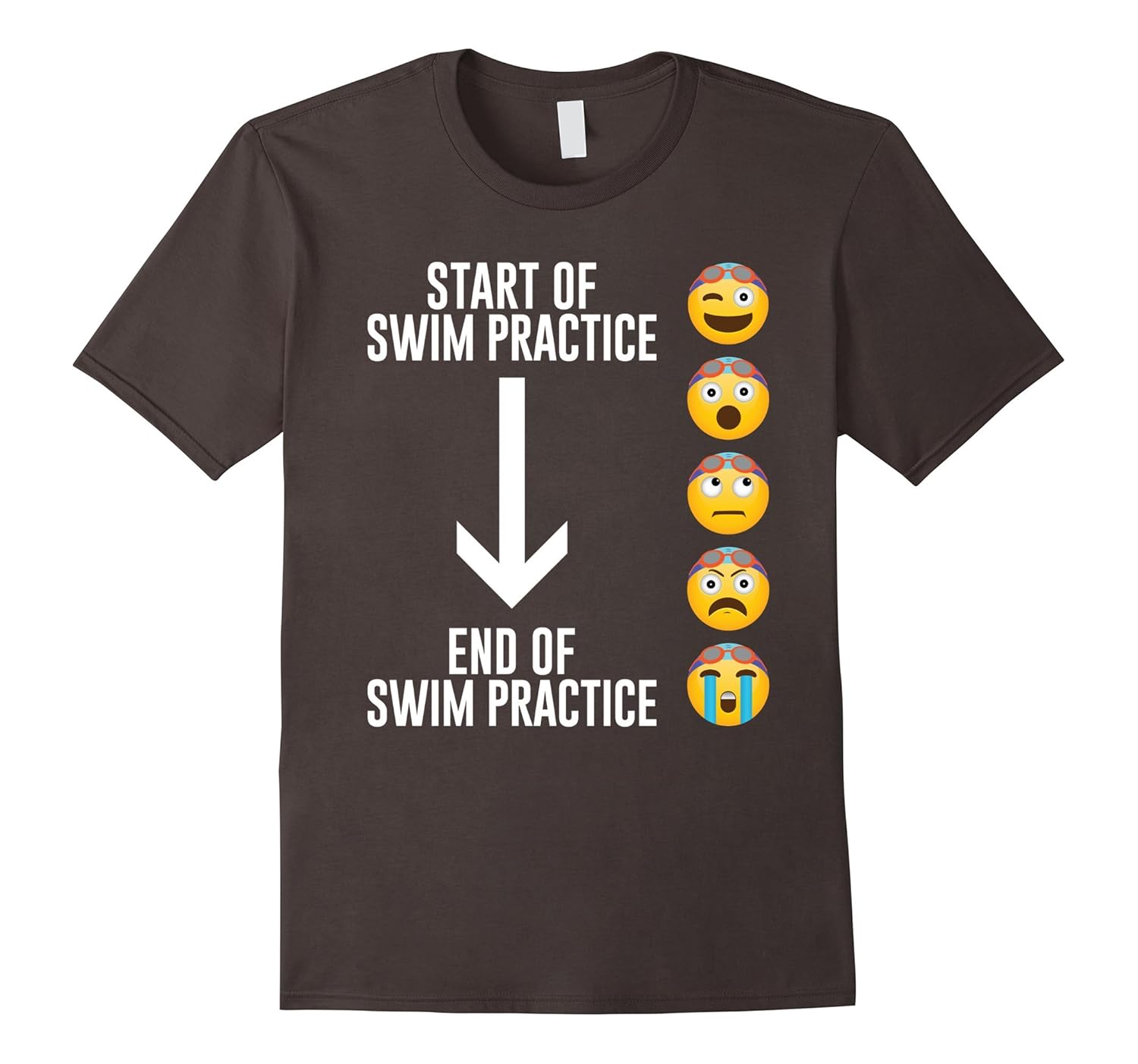 Solid colors: 100% Cotton; Heather Grey: 90% Cotton, 10% Polyester; All Other Heathers: 65% Cotton, 35% Polyester, Imported, Machine wash cold with like colors, dry low heat, This emoji swim t shirt makes the perfect gift for swimmer whether competitive or casual in the pool. This emoji shirt features a range of face emotions that every swimmer will absolutely love. The emoji faces include swimmers with swim caps and goggles. Wear this fun swimming t-shirt to the next swim meet, swim practice or local pool. Don”t buy just any ordinary swimmer shirt, make it an emoji swim shirt and put a smile on a swimmer”s face this holiday season! Make sure to collect all our emoji shirts!, Lightweight, Classic fit, Double-needle sleeve and bottom hem