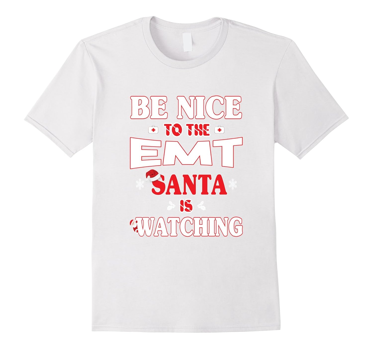 Solid colors: 100% Cotton; Heather Grey: 90% Cotton, 10% Polyester; All Other Heathers: 65% Cotton, 35% Polyester; Imported; Machine wash cold with like colors, dry low heat; EMT Shirt-Be Nice To the EMT-Santa Is Watching; Trying to find the perfect EMT gifts for Christmas? Look no further. This adorable EMT tee is just the right fit!; Lightweight, Classic fit, Double-needle sleeve and bottom hem