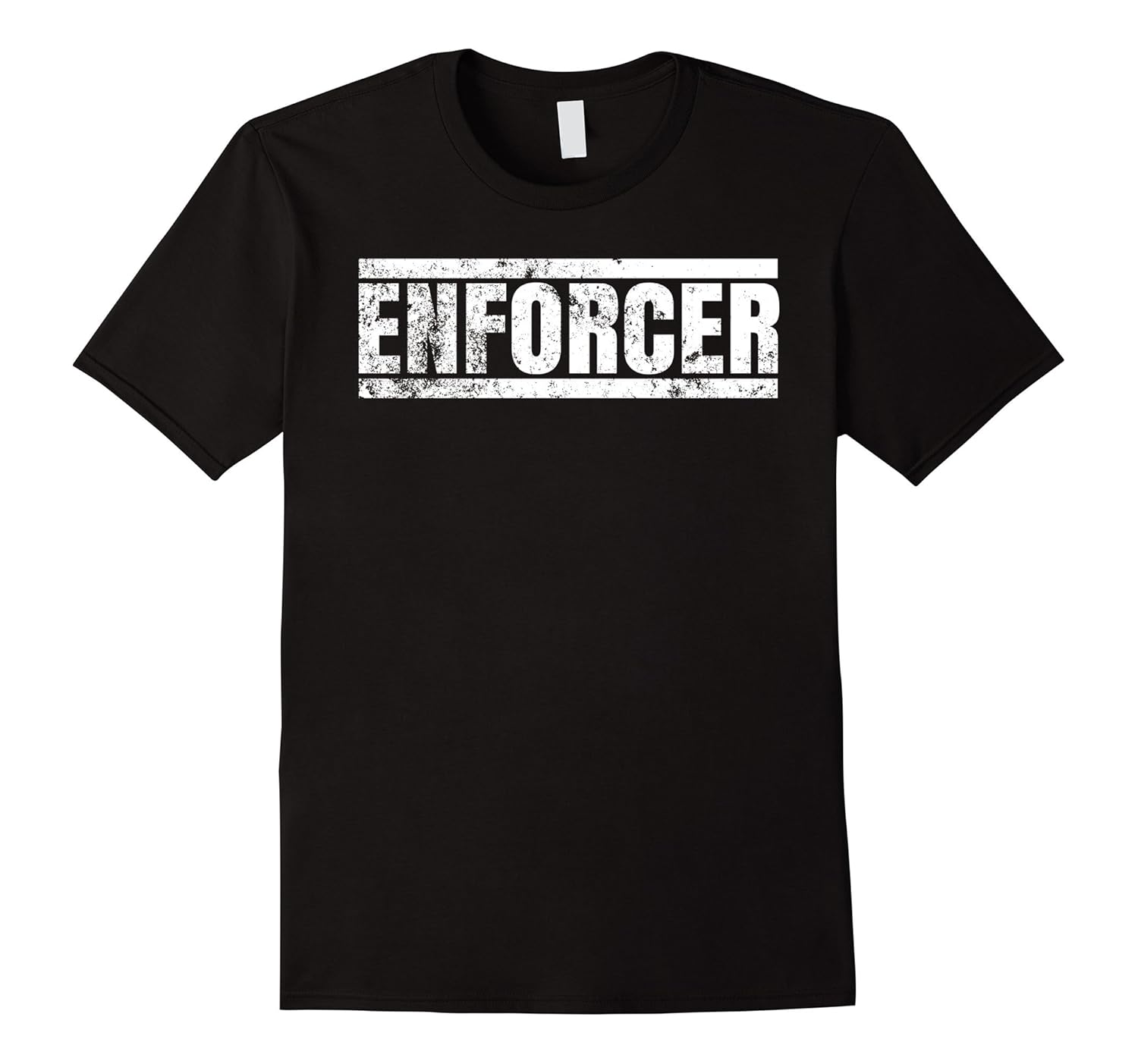 Solid colors: 100% Cotton; Heather Grey: 90% Cotton, 10% Polyester; All Other Heathers: 65% Cotton, 35% Polyester, Imported, Machine wash cold with like colors, dry low heat, Enforcer Shirt, Lightweight, Classic fit, Double-needle sleeve and bottom hem