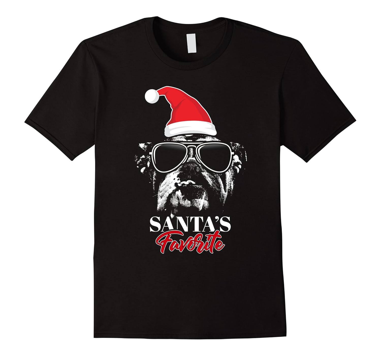 English Bulldog Santa’s Favorite Funny Christmas T-Shirt-ANZ
