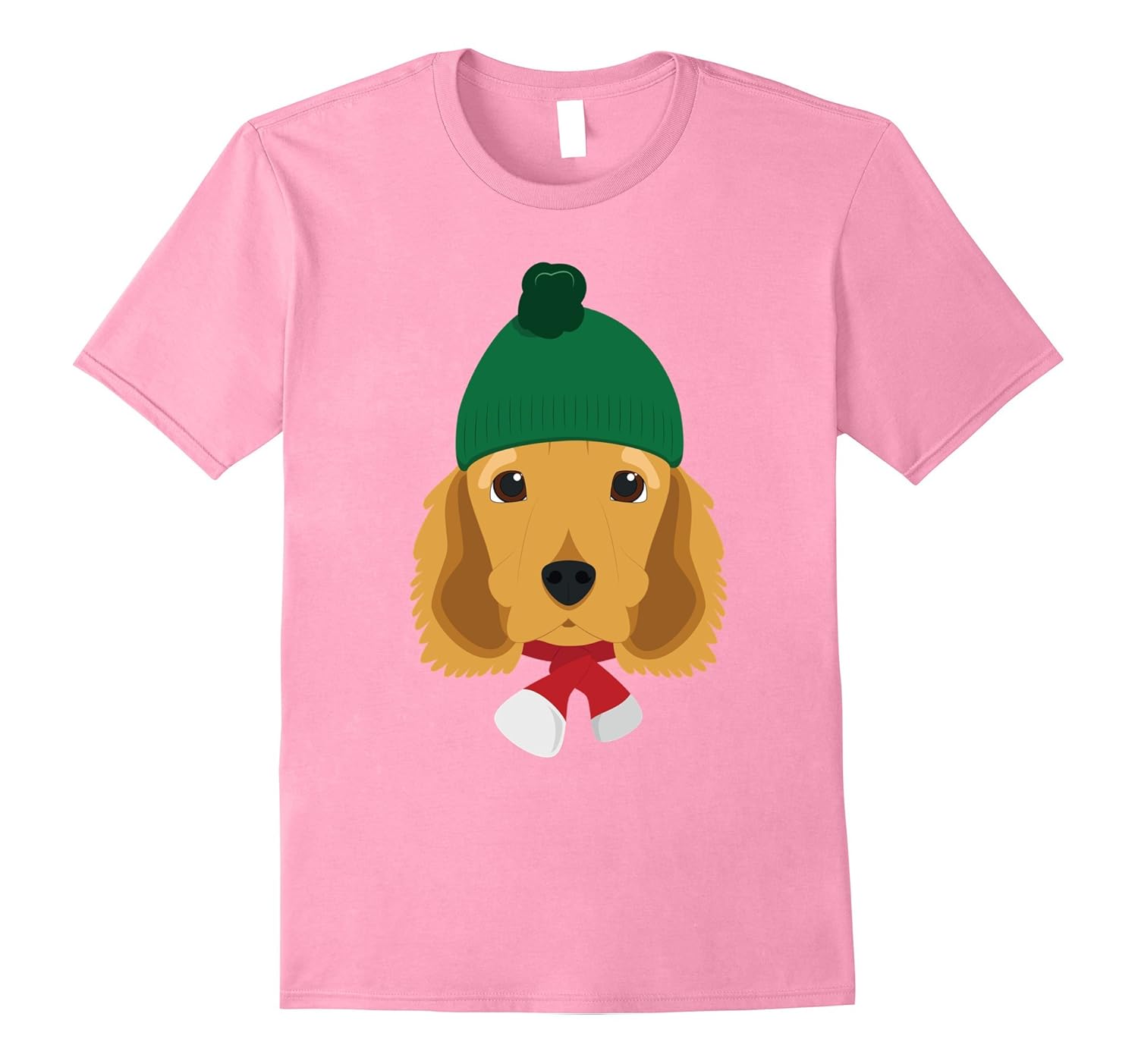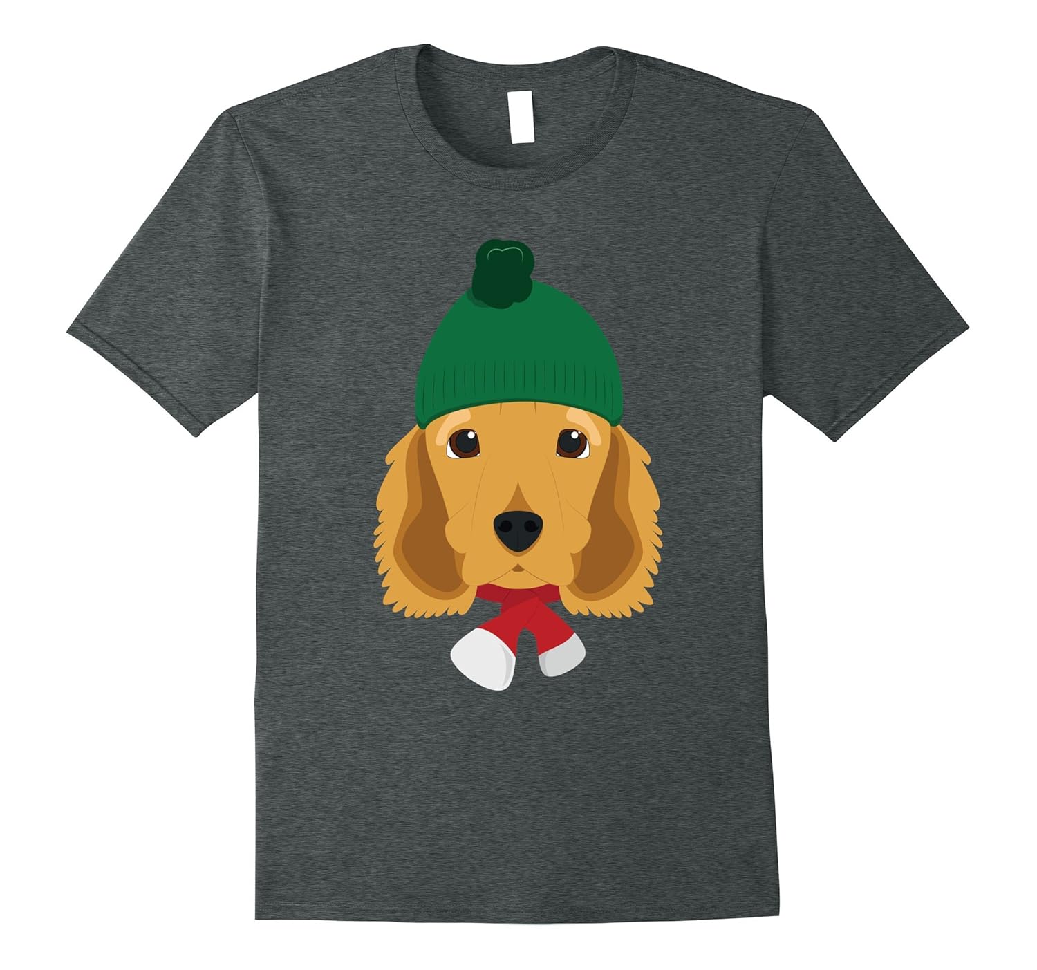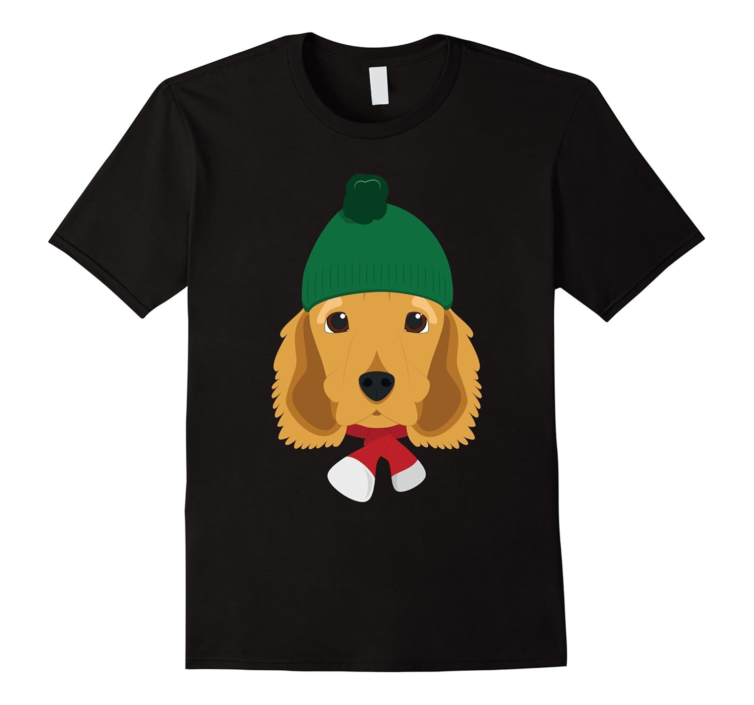 English Cocker Spaniel Dog Wearing A Woolen Cap Xmas Tshirt-ANZ