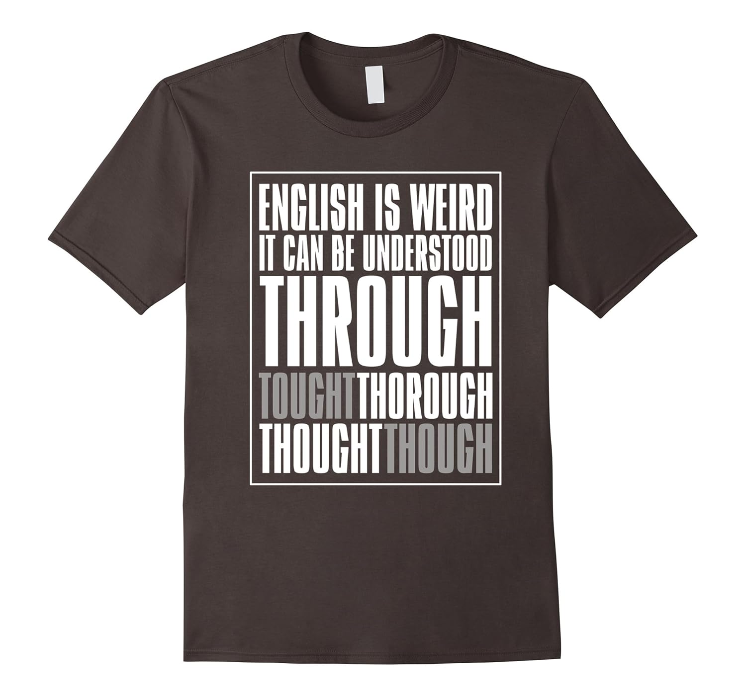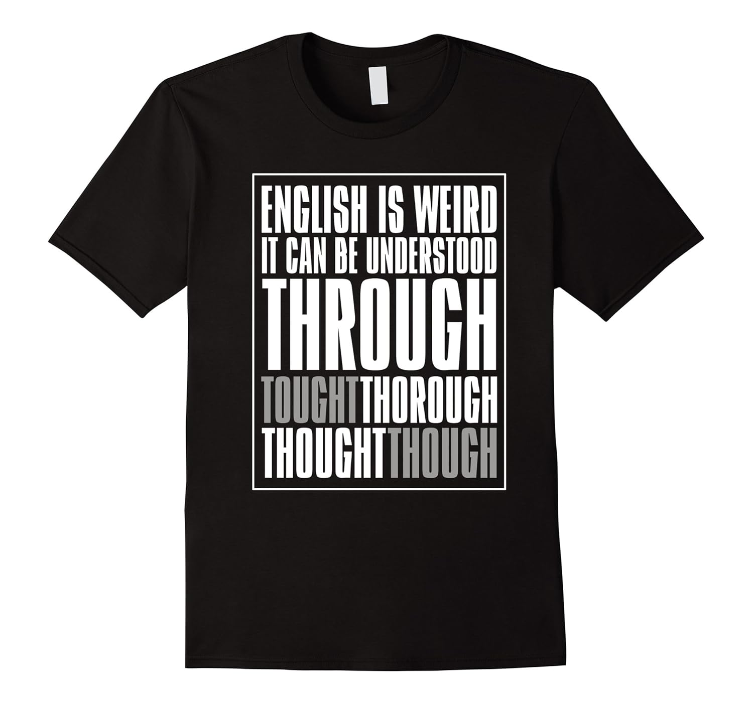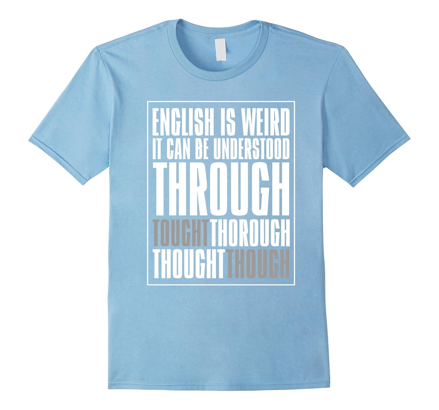 Solid colors: 100% Cotton; Heather Grey: 90% Cotton, 10% Polyester; All Other Heathers: 65% Cotton, 35% Polyester; Imported; Machine wash cold with like colors, dry low heat; English Is Weird It Can Be Understood Through Tough Thorough Thought Though – author, writer, bookworm, or freaking love reading funny English quotes, sayings, phrases, jokes, sarcastic shirts, this is for you! Christmas gift; Top sporty hilarious great design perfect awesome cute sexy Wear at bars concerts college school park work store home mall shopping Trend for wife husband partner women men best friend girlfriend boyfriend papa mama man dad mother mom father daddy girl boy; Lightweight, Classic fit, Double-needle sleeve and bottom hem