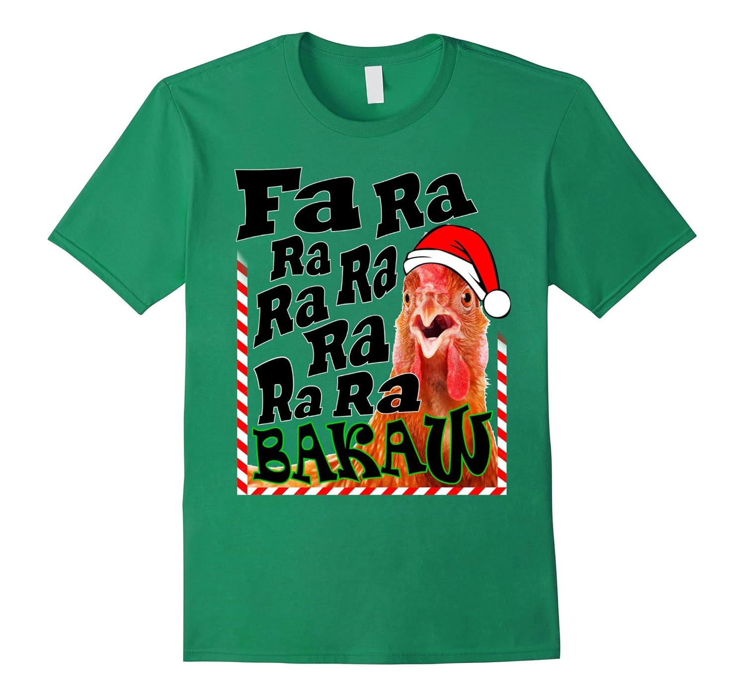 Solid colors: 100% Cotton; Heather Grey: 90% Cotton, 10% Polyester; All Other Heathers: 65% Cotton, 35% Polyester; Imported; Machine wash cold with like colors, dry low heat; Candy cane border accents the bright chicken graphic; Bold lettering sings out Fa Ra Ra BAKAW; Lightweight, Classic fit, Double-needle sleeve and bottom hem