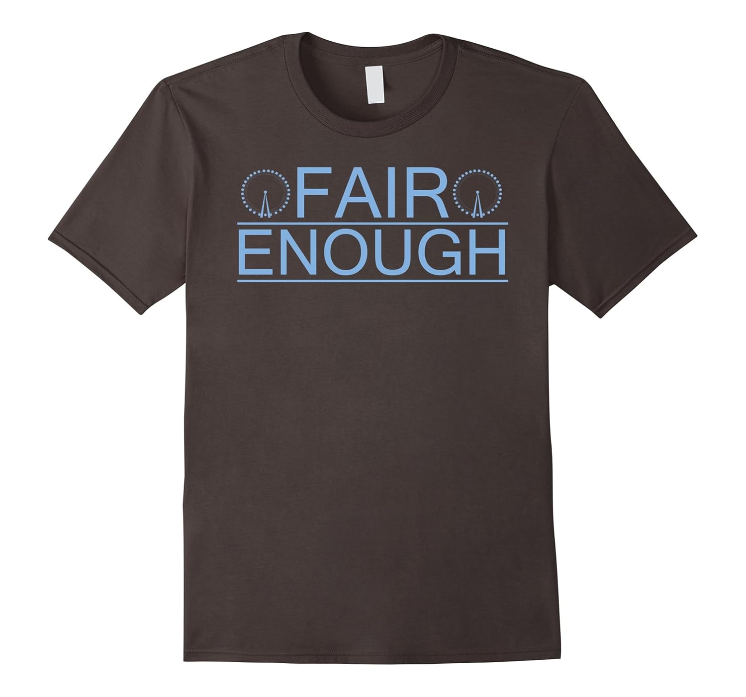Solid colors: 100% Cotton; Heather Grey: 90% Cotton, 10% Polyester; All Other Heathers: 65% Cotton, 35% Polyester, Imported, Machine wash cold with like colors, dry low heat, This is the perfect t-shirt for anyone who says Fair Enough, someone who has a fair opinion, or a loved one you know that has a unique sense of humor and classy style. If you like fun sayings and quotes, this shirt is for you!, Shirt is designed Slim,consider ordering a size up for a more loose fit. Featuring Ferris wheels, a quirky saying, and blue text, this shirt is perfect to wear to the fair, at work, school, or family holidays parties. Lightweight, Classic fit, Double-needle sleeve and bottom hem
