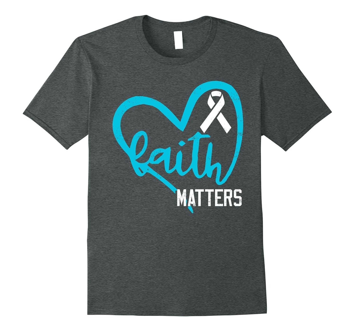 Solid colors: 100% Cotton; Heather Grey: 90% Cotton, 10% Polyester; All Other Heathers: 65% Cotton, 35% Polyester, Imported, Machine wash cold with like colors, dry low heat, This Faith Matters shirt is to support awareness for PCOS polycystic ovarian syndrome. PCOS awareness apparel clothing gift products for polycystic ovarian syndrome walk events. This Faith Matters Awareness T-Shirt is designed and printed to be fitted. For a more loose fit, please order a size up. Lightweight, Classic fit, Double-needle sleeve and bottom hem
