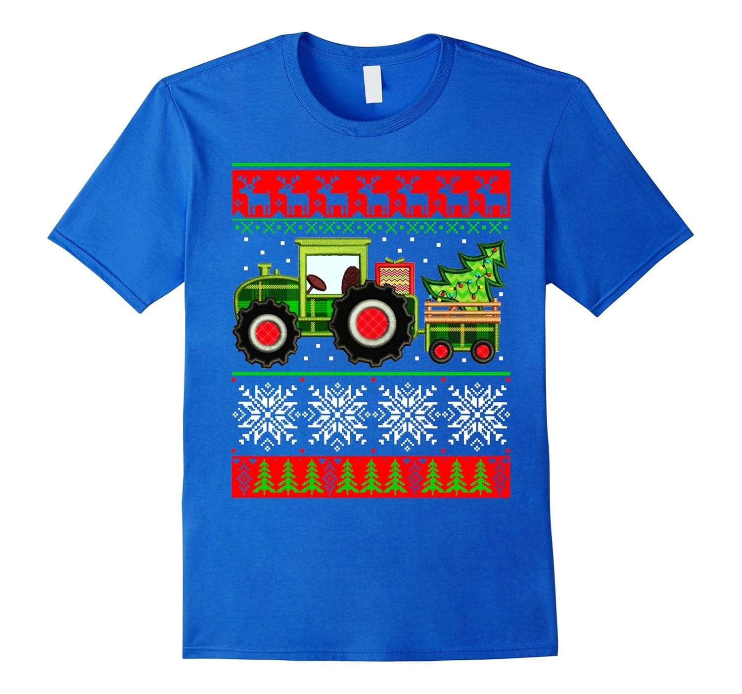 Solid colors: 100% Cotton; Heather Grey: 90% Cotton, 10% Polyester; All Other Heathers: 65% Cotton, 35% Polyester; Imported; Machine wash cold with like colors, dry low heat; Farmer Christmas Sweater Shirt, Farmer Tractor christmas shirt, Farmer christmas shirt; Lightweight, Classic fit, Double-needle sleeve and bottom hem