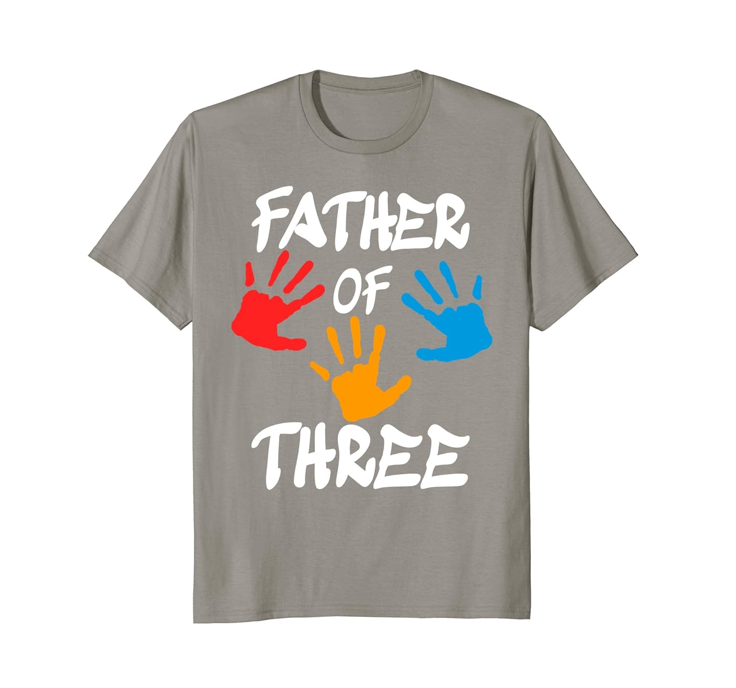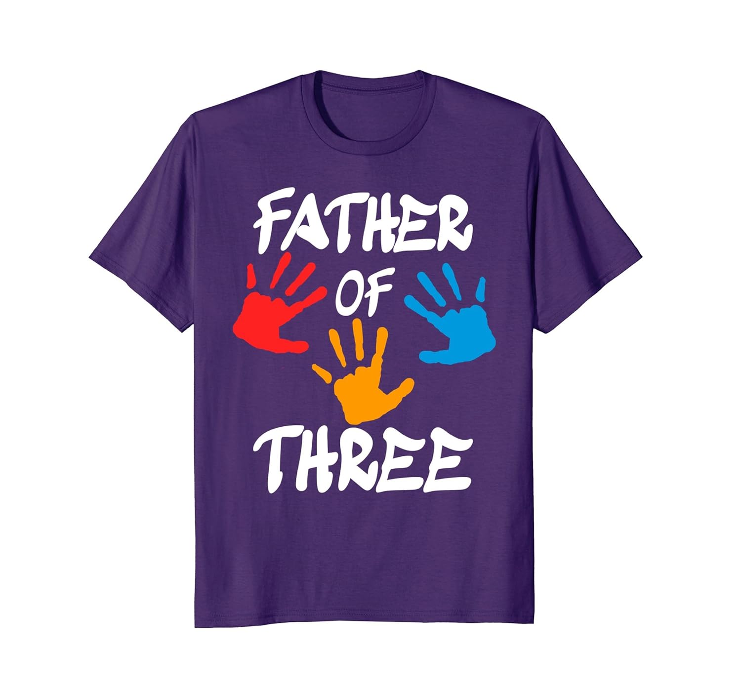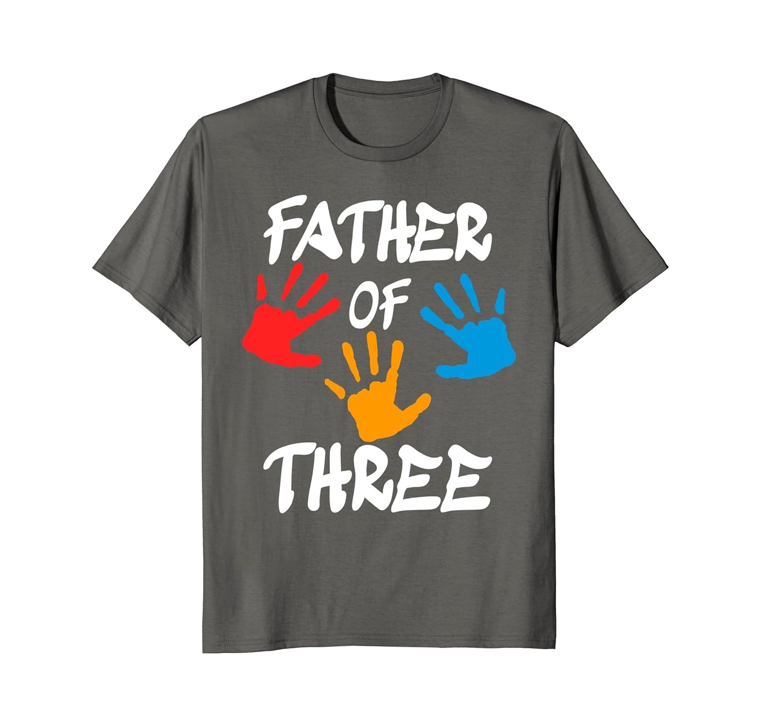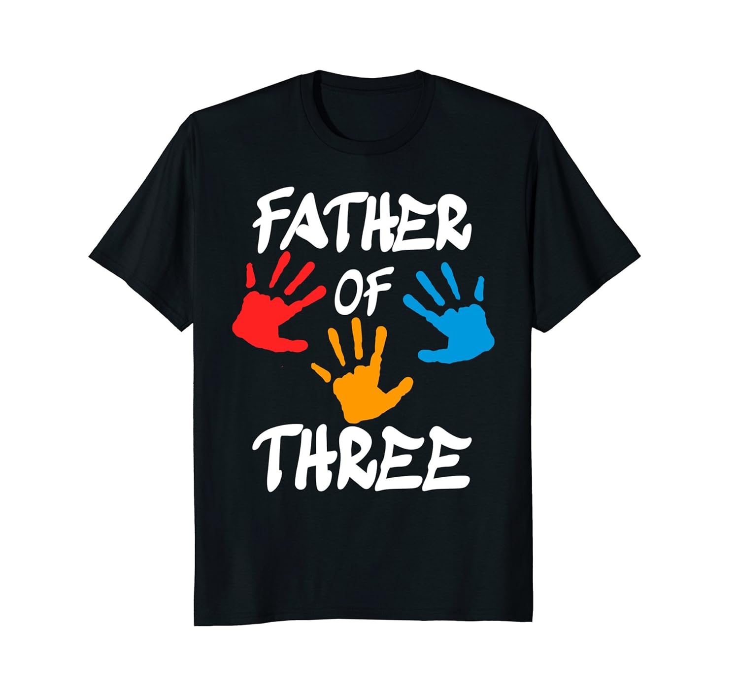 Solid colors: 100% Cotton; Heather Grey: 90% Cotton, 10% Polyester; All Other Heathers: 50% Cotton, 50% Polyester; Imported; Machine wash cold with like colors, dry low heat; Father of three, Funny Hand Print Graphic Shirt!Proud Dad of three kids, whether son, daughter or twins, wear this awesome Shirt with pride! Best Gift idea for Best Dad on Fathers day, Daddys Birthday.; Show dad some love with this tee.Funny Gift for Fathers day,Valentines Day,Christmas,New Years Eve,to support tired Dad, show love to your Patchwork Family,demonstrate your Relationship,Bless Dad,say Thank you Dad!; Lightweight, Classic fit, Double-needle sleeve and bottom hem