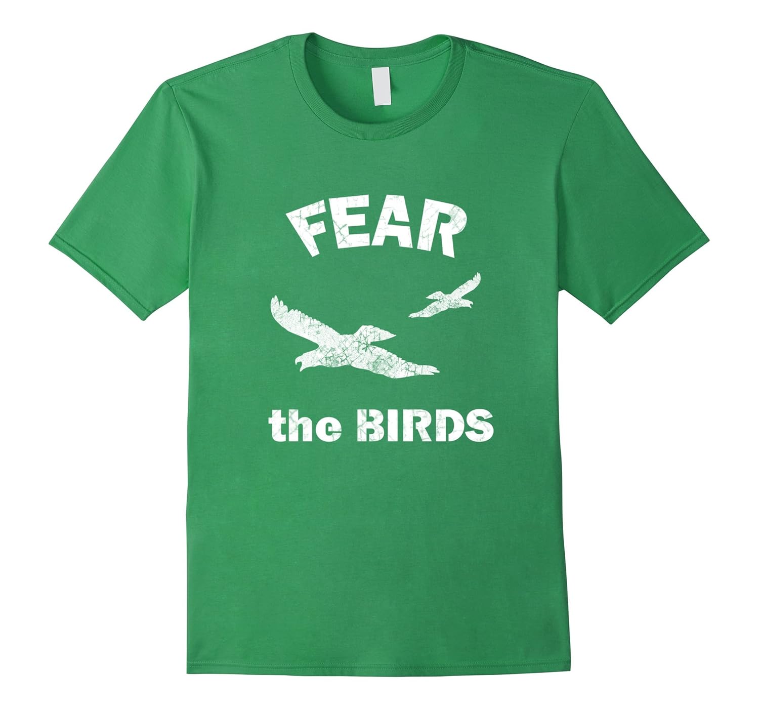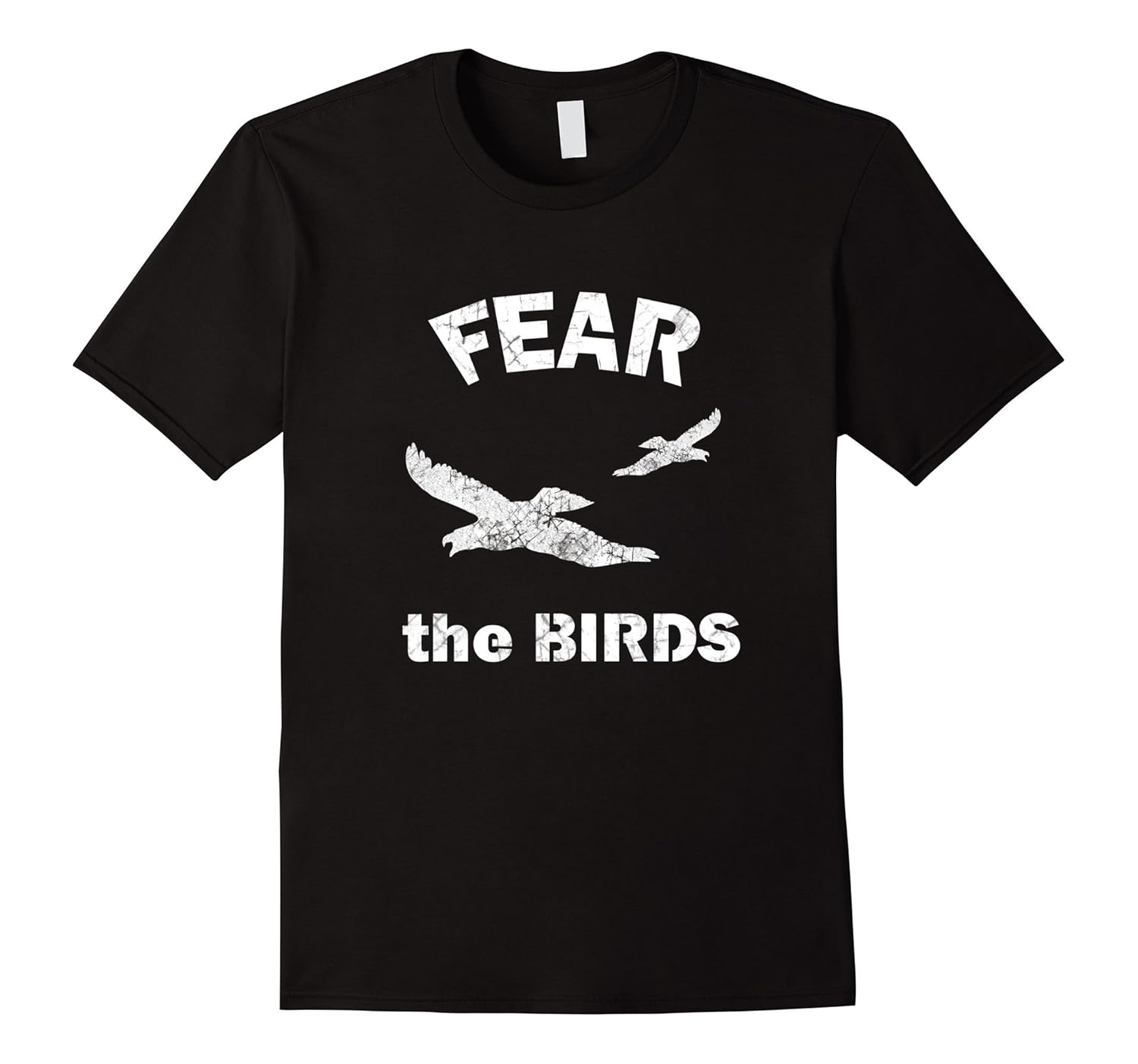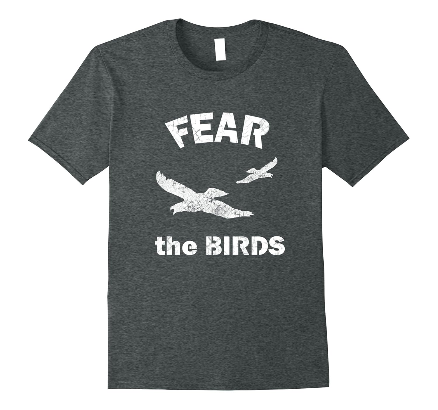 Solid colors: 100% Cotton; Heather Grey: 90% Cotton, 10% Polyester; All Other Heathers: 65% Cotton, 35% Polyester, Imported, Machine wash cold with like colors, dry low heat, This cool animal phobia t shirt has the words FEAR THE BIRDS in an epic sporty white distressed font. The word fear wraps around THE BIRDS and the TWO SWOOPING BIRDS ARE FLYING AROUND above the words THE BIRDS, T Shirt makes a great gift for animal lovers, especially BIRD lovers, who fear of being attacked by preditor birds like falcons ravens vultures hawks or eagles. Great T shirt for summer bird watching or for hunting season to wear while watching football, Lightweight, Classic fit, Double-needle sleeve and bottom hem