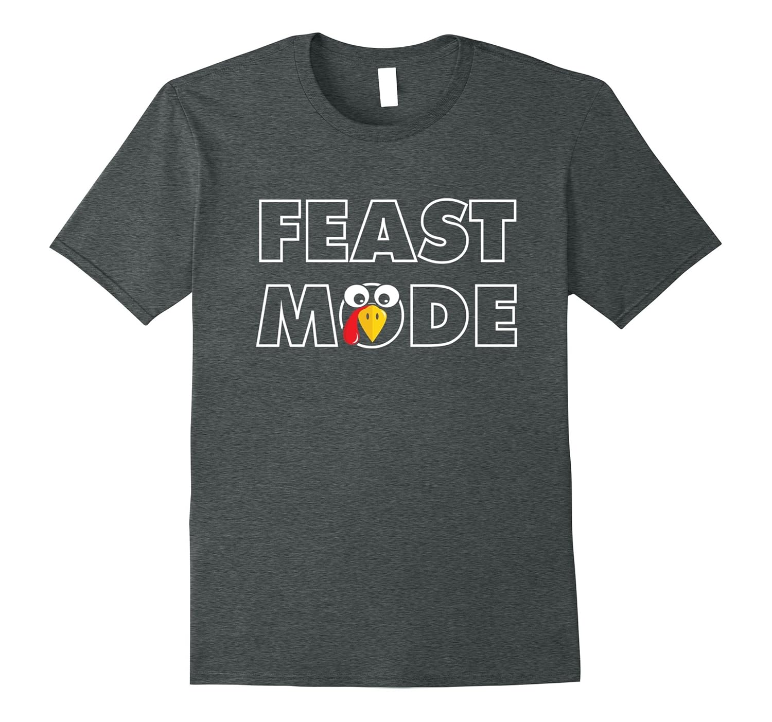 Solid colors: 100% Cotton; Heather Grey: 90% Cotton, 10% Polyester; All Other Heathers: 65% Cotton, 35% Polyester, Imported, Machine wash cold with like colors, dry low heat, This funny thanksgiving shirt for adults and kids features a graphic of a turkey face along with the humorous saying, feast mode, written in a stylized white typeface centered on the upper portion of the tshirt, A happy fun tee design suitable for a mom, dad, women, men, boys, and girls with a unique humor quote and cute graphic making this t shirt a great holiday party birthday gift idea for anyone born in november or who just love thanksgiving day, Lightweight, Classic fit, Double-needle sleeve and bottom hem