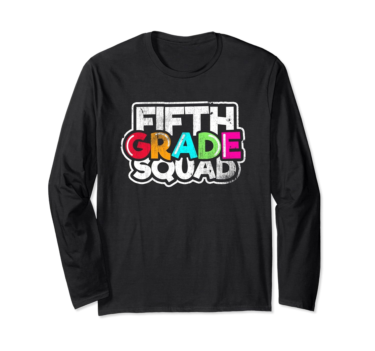 Solid colors: 100% Cotton; Heather Grey: 90% Cotton, 10% Polyester; All Other Heathers: 50% Cotton, 50% Polyester; Imported; Machine wash cold with like colors, dry low heat; Are you part of the fifth grade squad? If so, then this long sleeve t-shirt is for you! Grab this cute school long sleeves shirt as the perfect gift for any student or teacher whos part of team 5th grade!; Fifth Grade Squad School Student Teacher Long T-Shirt; Lightweight, Classic fit, Double-needle sleeve and bottom hem