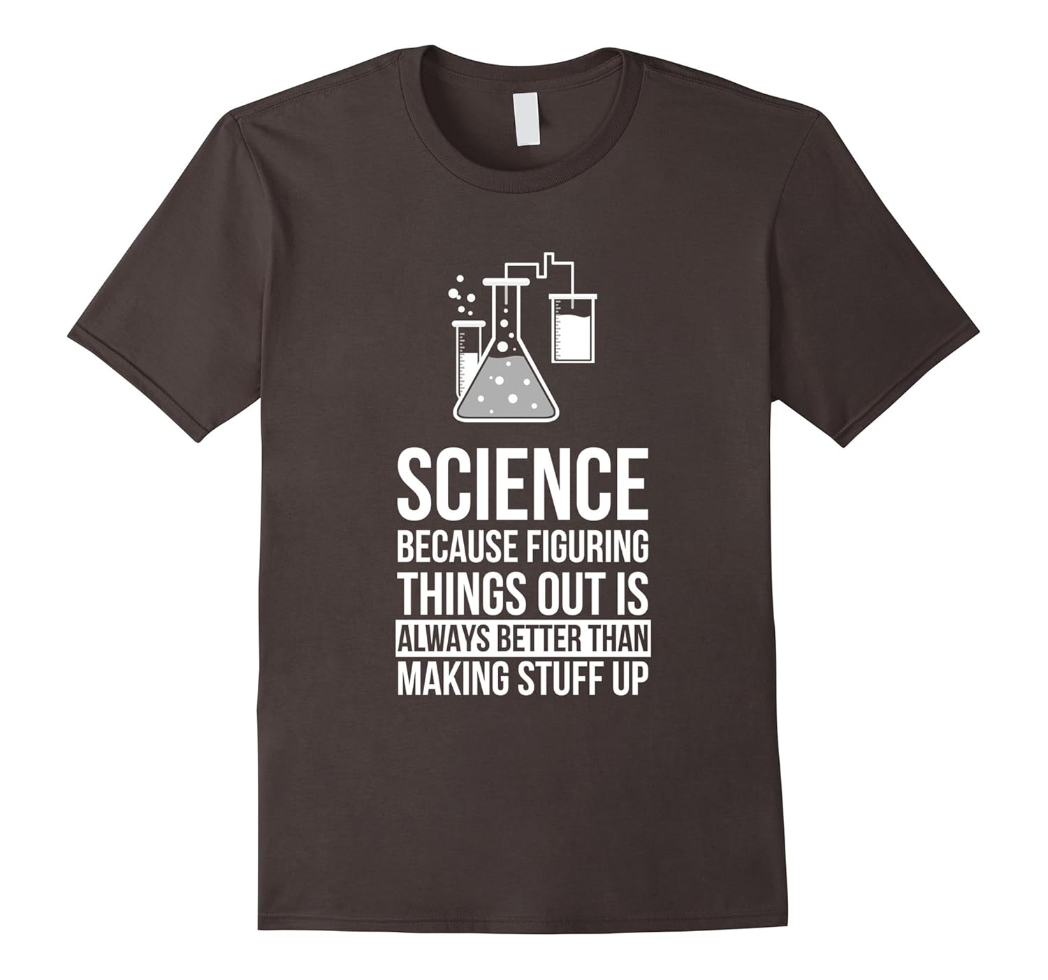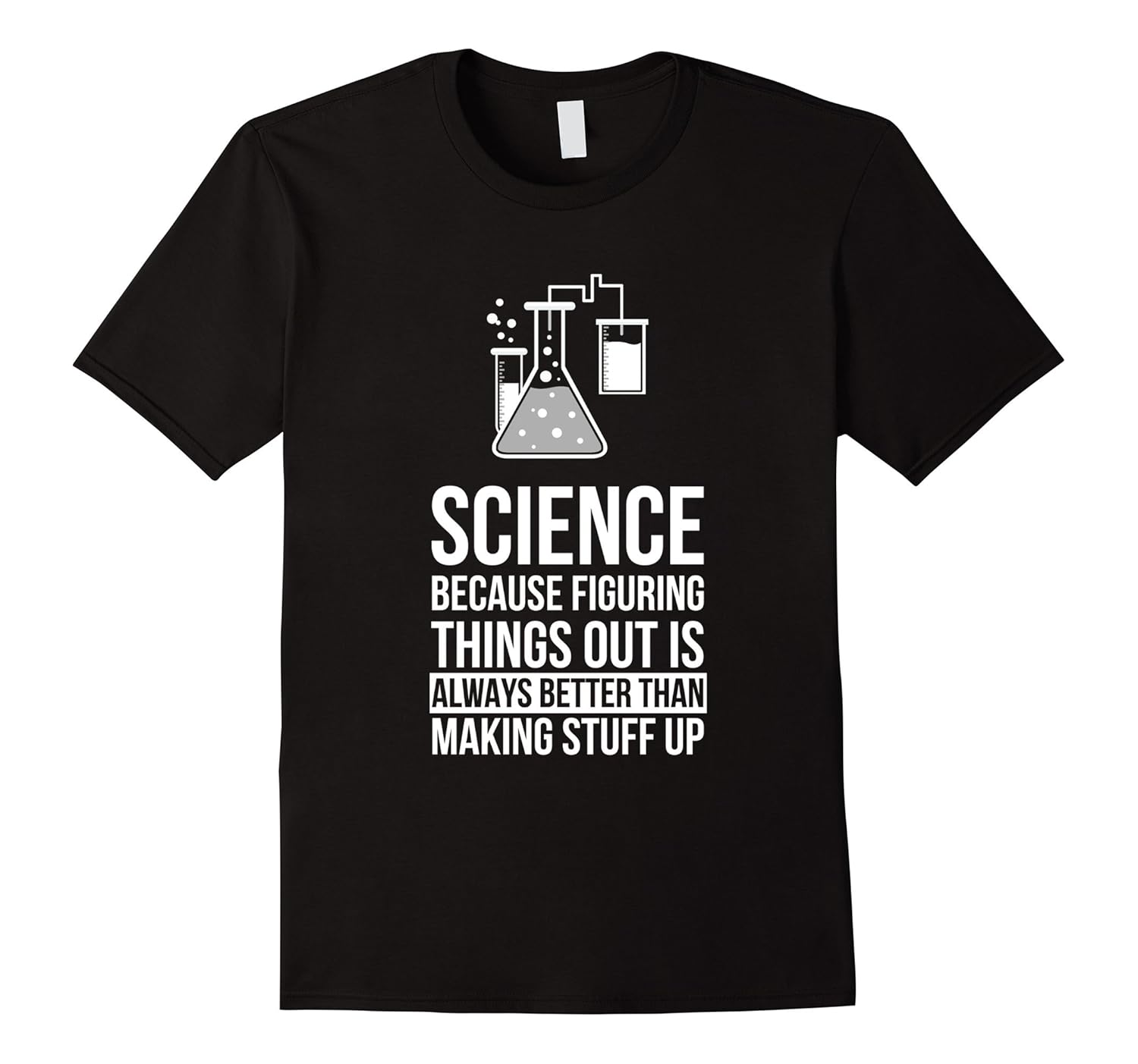 Solid colors: 100% Cotton; Heather Grey: 90% Cotton, 10% Polyester; All Other Heathers: 65% Cotton, 35% Polyester, Imported, Machine wash cold with like colors, dry low heat, Science because figuring things out is always better than making stuff up shirt. This brilliant science saying T shirt makes a great gift for a passionate science teacher, lecturer, tutor or professor. This Science joke T Shirt with conical flask is designed and printed to be fitted. For a more loose fit, please order a size up. Lightweight, Classic fit, Double-needle sleeve and bottom hem