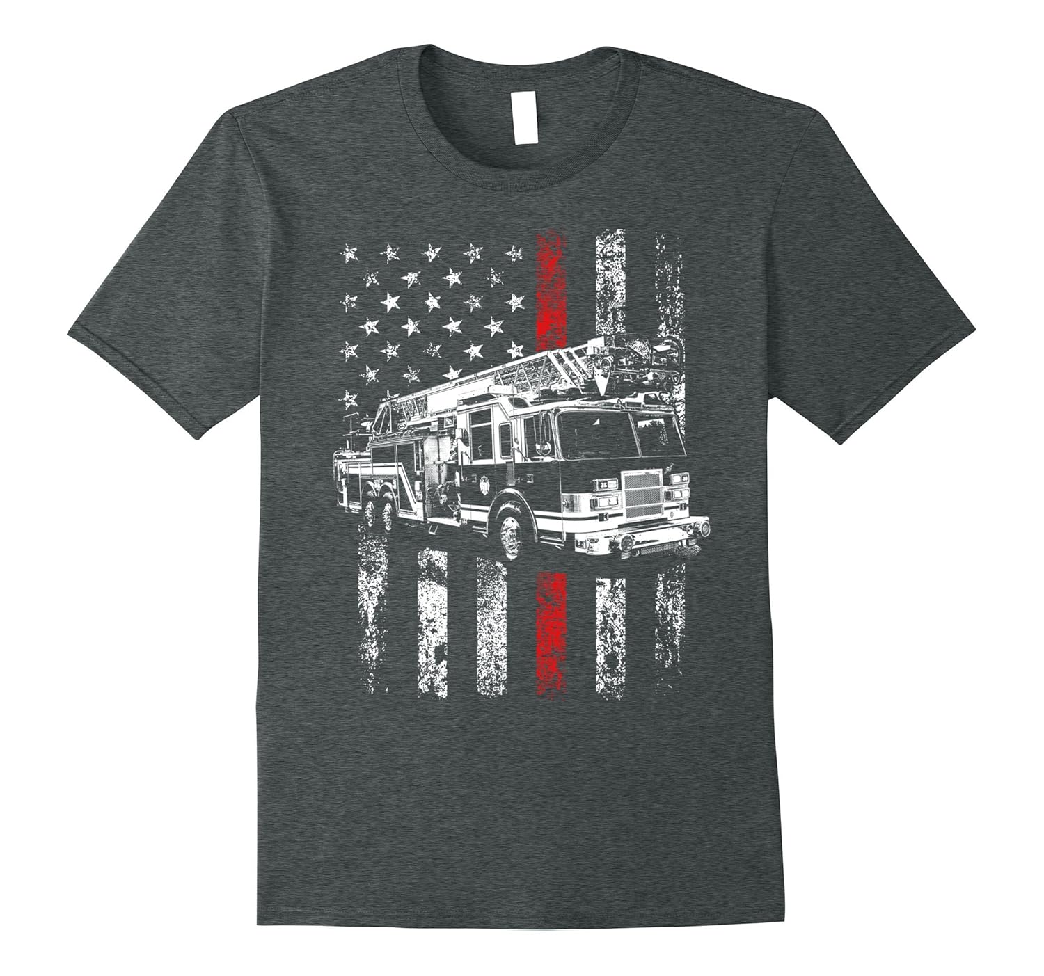 Solid colors: 100% Cotton; Heather Grey: 90% Cotton, 10% Polyester; All Other Heathers: 65% Cotton, 35% Polyester, Imported, Machine wash cold with like colors, dry low heat, This patriotic fireman American flag shirt features a fire engine truck and a thin red line honoring firefighters of all ages. This thin red line firefighter shirt makes a great Christmas gift for firefighters. Show your pride in what you do with this fireman American flag shirt featuring a thin red line. Amp up your fireman apparel with this thin red line firefighter fireman shirt for firefighters, rescuers and volunteer fireman. Lightweight, Classic fit, Double-needle sleeve and bottom hem