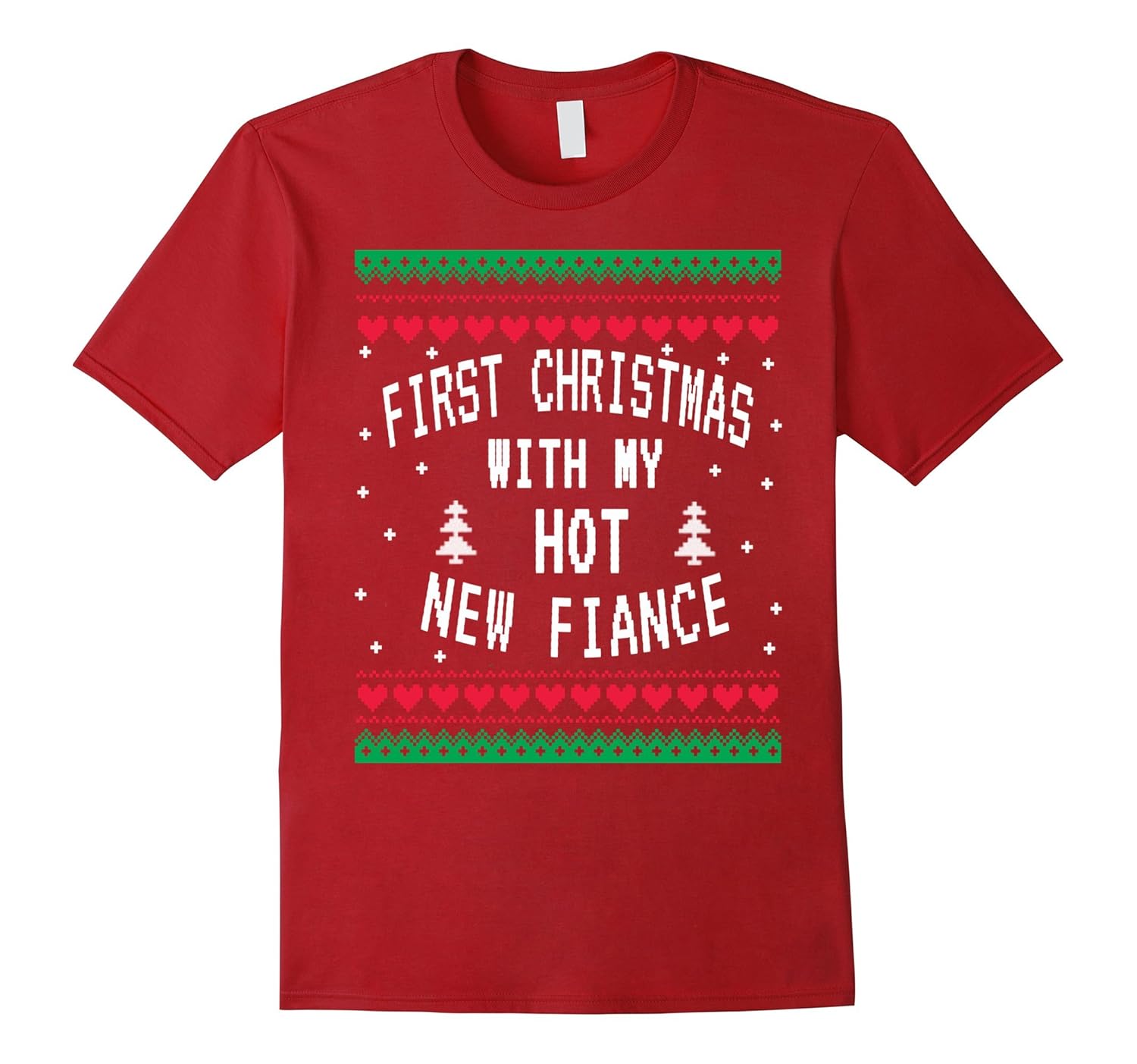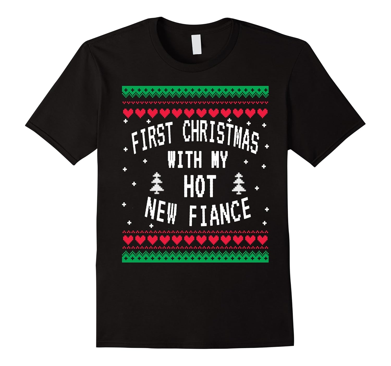 Solid colors: 100% Cotton; Heather Grey: 90% Cotton, 10% Polyester; All Other Heathers: 65% Cotton, 35% Polyester; Imported; Machine wash cold with like colors, dry low heat; First Christmas With My Hot New Fiance Shirt Ugly Sweater T-Shirt is designed to be FIT. For a more LOOSE FIT, please order a SIZE UP. This shirt comes in all sizes for men,women,boys and girls.; First Christmas With My Hot New Fiance Shirt Ugly Sweater T-Shirt is perfect gift for you to show off how proud your are as a husband on Christmas, Christmas Eve, Thanksgiving , New Year Eve, New Year …etc; Lightweight, Classic fit, Double-needle sleeve and bottom hem