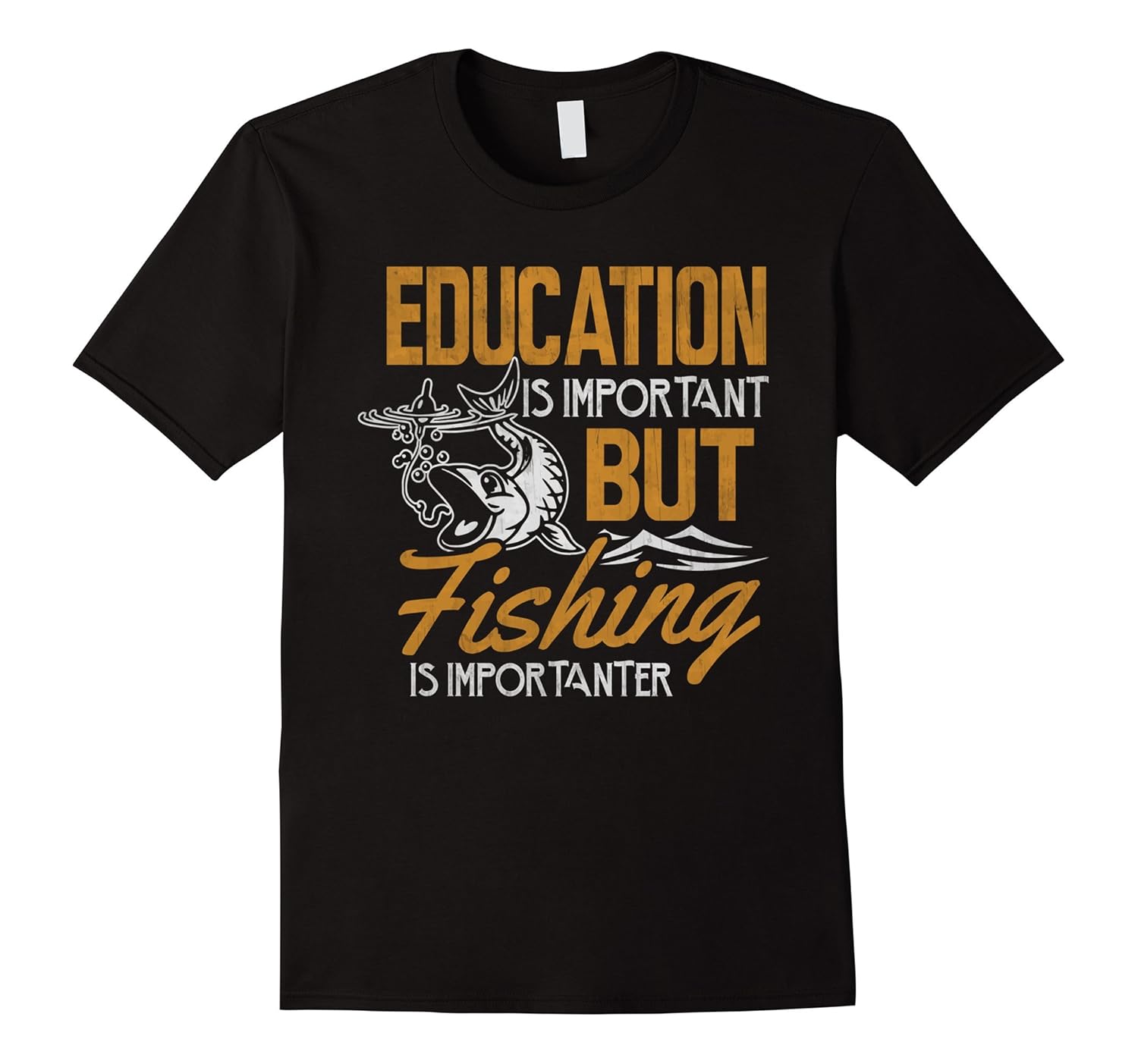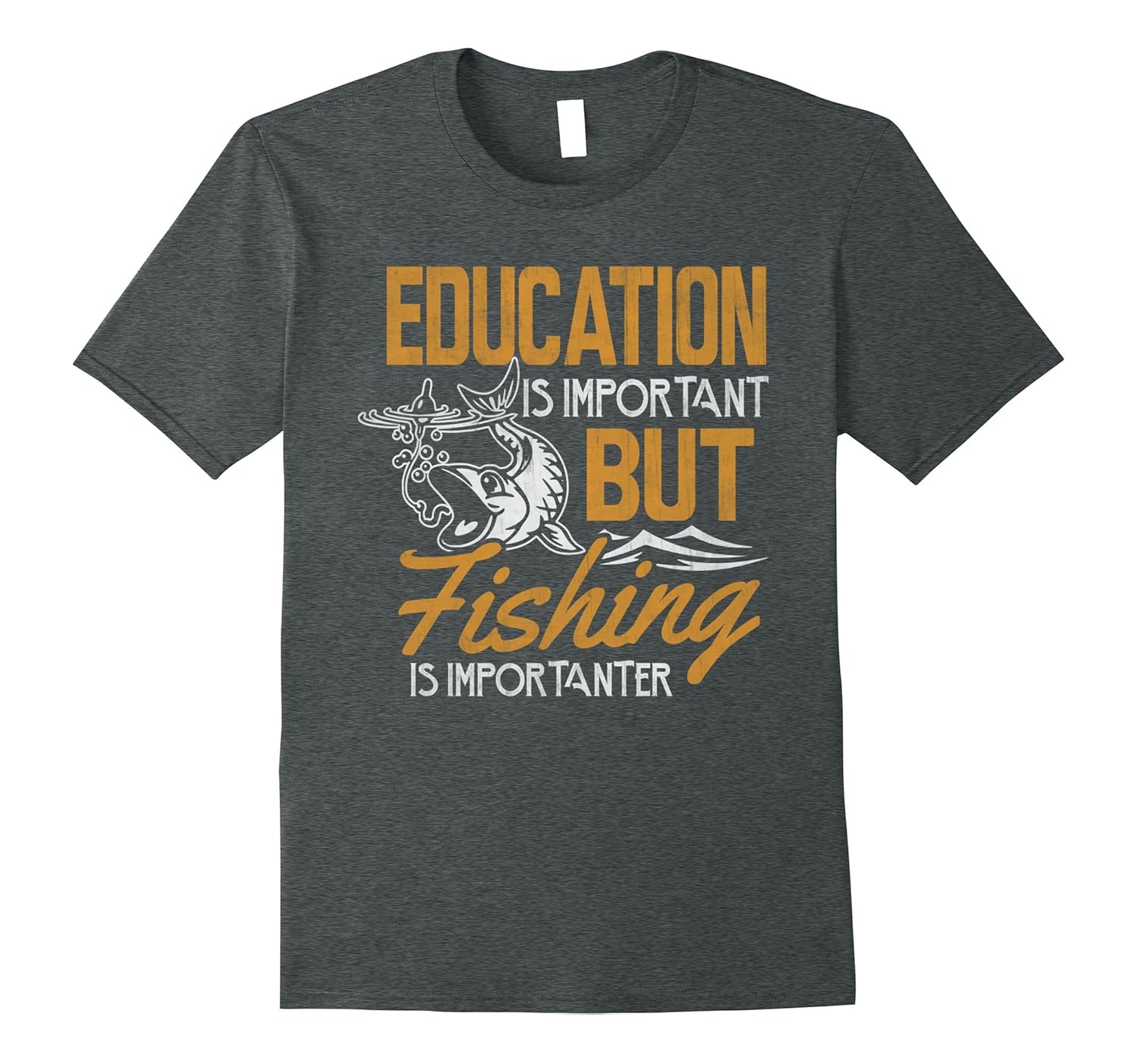 Solid colors: 100% Cotton; Heather Grey: 90% Cotton, 10% Polyester; All Other Heathers: 65% Cotton, 35% Polyester, Imported, Machine wash cold with like colors, dry low heat, Fishing Shirt, Education is Important But Fishing is Importanter T-Shirt for Women, Boys, Girls and Kids. Love Fishing Shirt, Funny fishing shirts, Fishing Dad Shirt. Lightweight, Classic fit, Double-needle sleeve and bottom hem