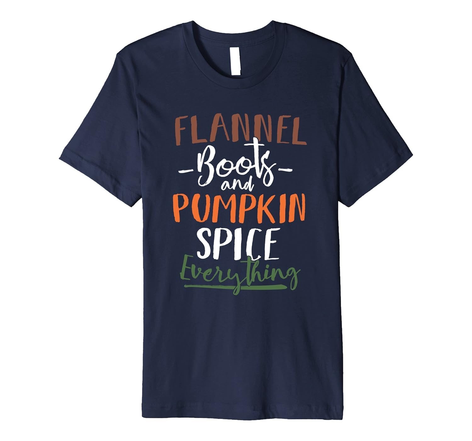 Solid colors: 100% Cotton; Heather Grey: 90% Cotton, 10% Polyester; All Other Heathers: 58% Cotton, 42% Polyester; Imported; Machine wash cold with like colors, dry low heat; Flannel Boots And Pumpkin Spice Everything T-Shirt. Great for harvest season, while enjoying your warm latte or coffee. Cute top for visiting a corn maze, pumpkin patch, hayrides, haunted houses, tailgates or football games.; Fit: Slim (consider ordering a larger size for a looser fit); For those who love Fall, Harvest Season, Halloween, and everything pumpkin. Great gift for Halloween, trick or treating, October birthdays, Halloween office parties and Thanksgiving.; This premium t-shirt is made of lightweight fine jersey fabric