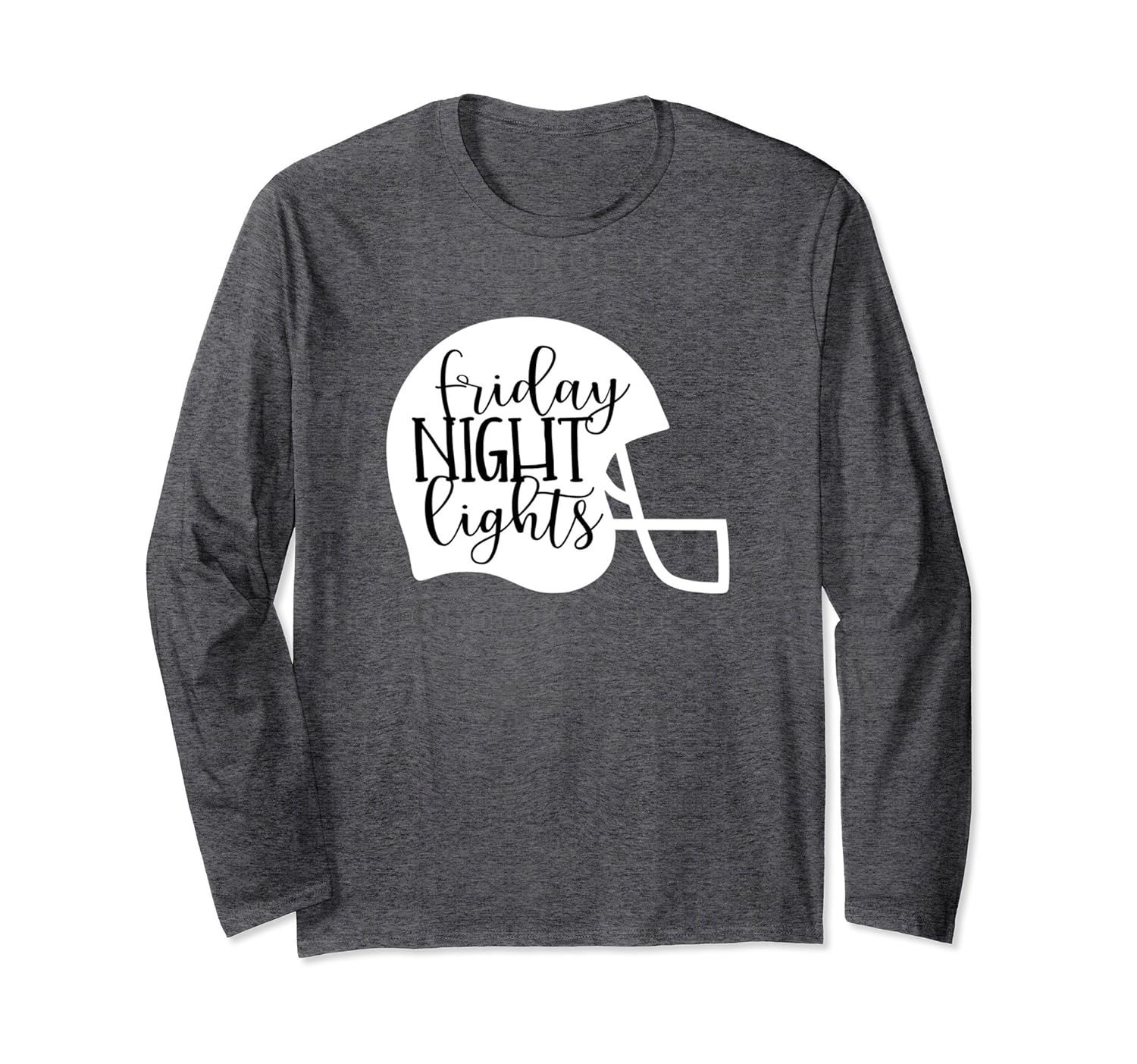 Solid colors: 100% Cotton; Heather Grey: 90% Cotton, 10% Polyester; All Other Heathers: 50% Cotton, 50% Polyester; Imported; Machine wash cold with like colors, dry low heat; Football Long Sleeve Shirt Helmet Friday Night Lights Mom Mama Fan High School Football; Lightweight, Classic fit, Double-needle sleeve and bottom hem