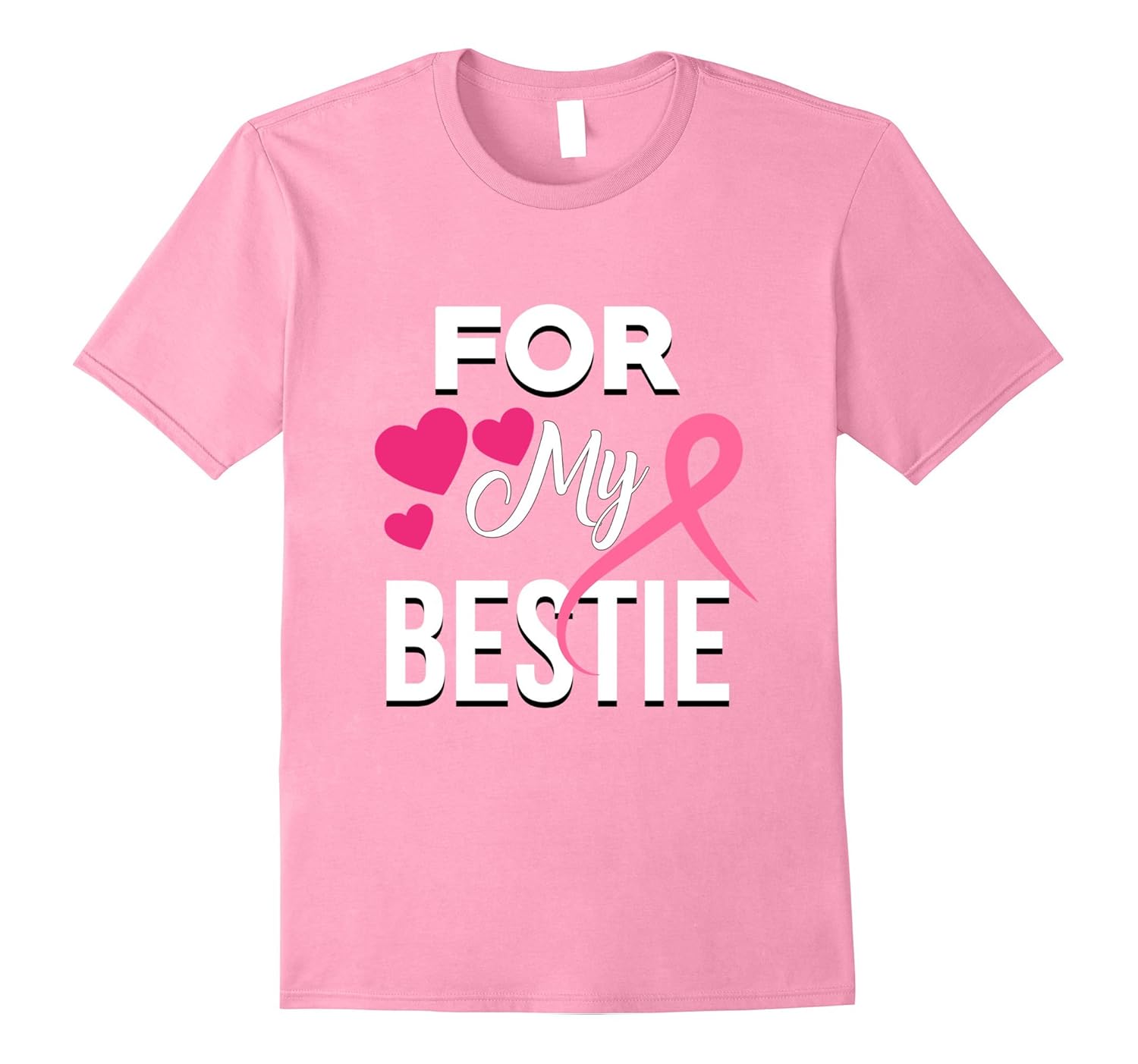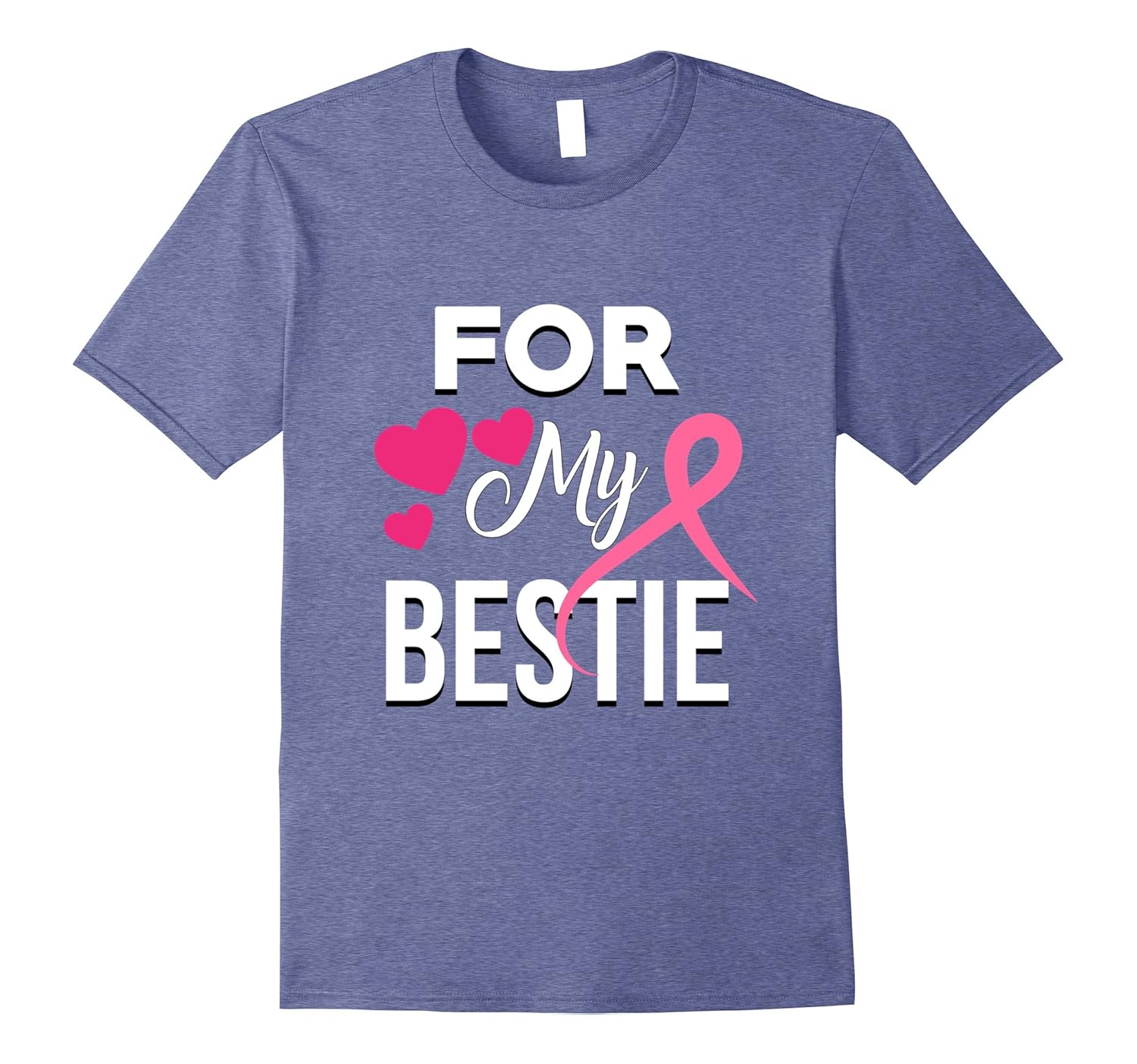 Solid colors: 100% Cotton; Heather Grey: 90% Cotton, 10% Polyester; All Other Heathers: 65% Cotton, 35% Polyester, Imported, Machine wash cold with like colors, dry low heat, Show your support for Breast Cancer Awareness Month this October with this bright and bold tee, Support your best friend with this pink ribbon and heart shirt as she fights breast cancer. This cancer awareness t-shirt is a great gift for your bestie because it”ll make her smile. Makes a wonderful cancer survivor gift as well. Lightweight, Classic fit, Double-needle sleeve and bottom hem