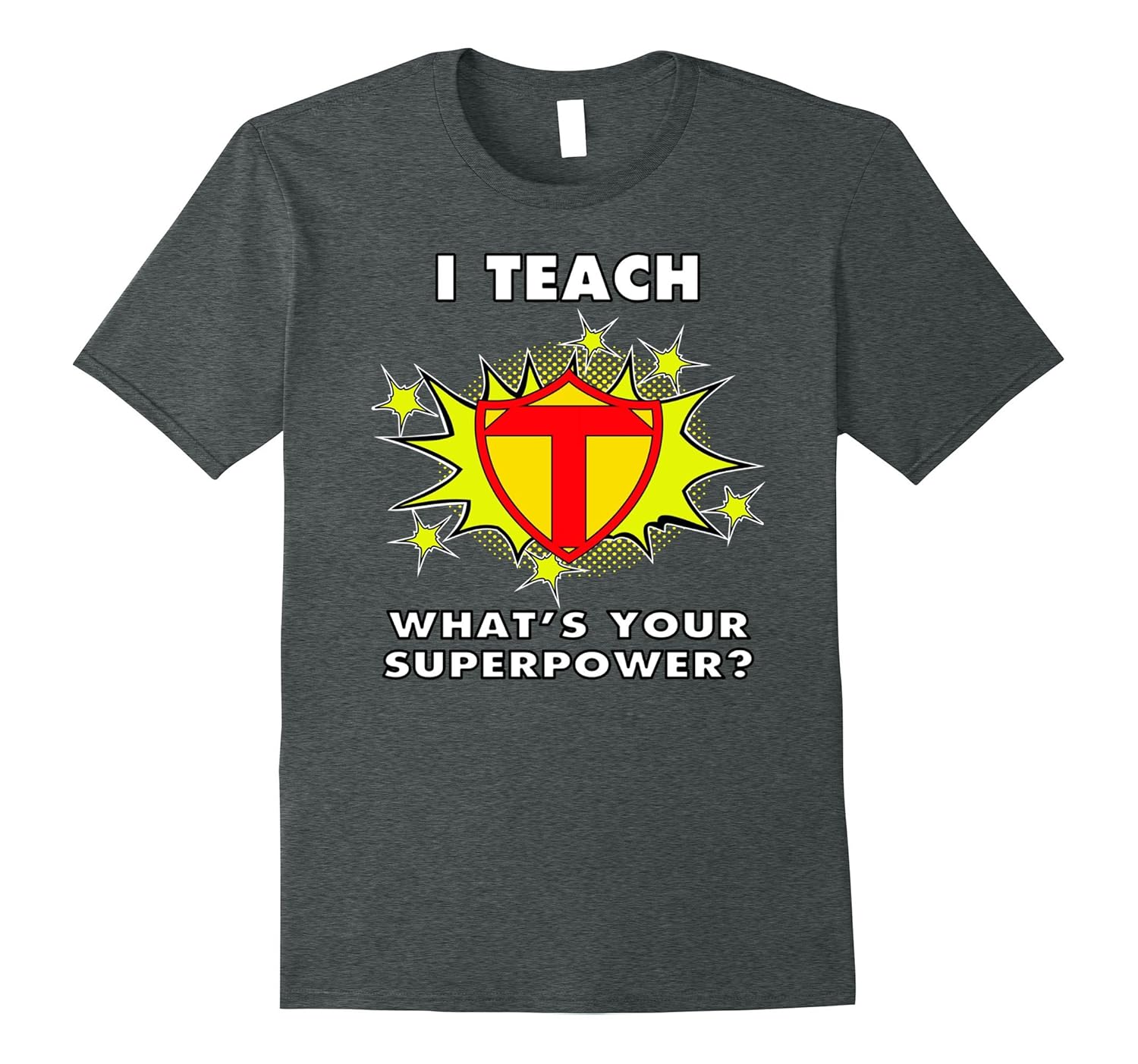 Solid colors: 100% Cotton; Heather Grey: 90% Cotton, 10% Polyester; All Other Heathers: 65% Cotton, 35% Polyester, Imported, Machine wash cold with like colors, dry low heat, Are you a superhero teacher. Our super teacher shirt with superhero shield and what”s your superpower tee is perfect for any teacher that goes above and beyond for kids!, This for teachers funny vintage superhero tshirt and I teach what”s your superpower saying makes a great gift idea for any teacher with super powers!, Lightweight, Classic fit, Double-needle sleeve and bottom hem