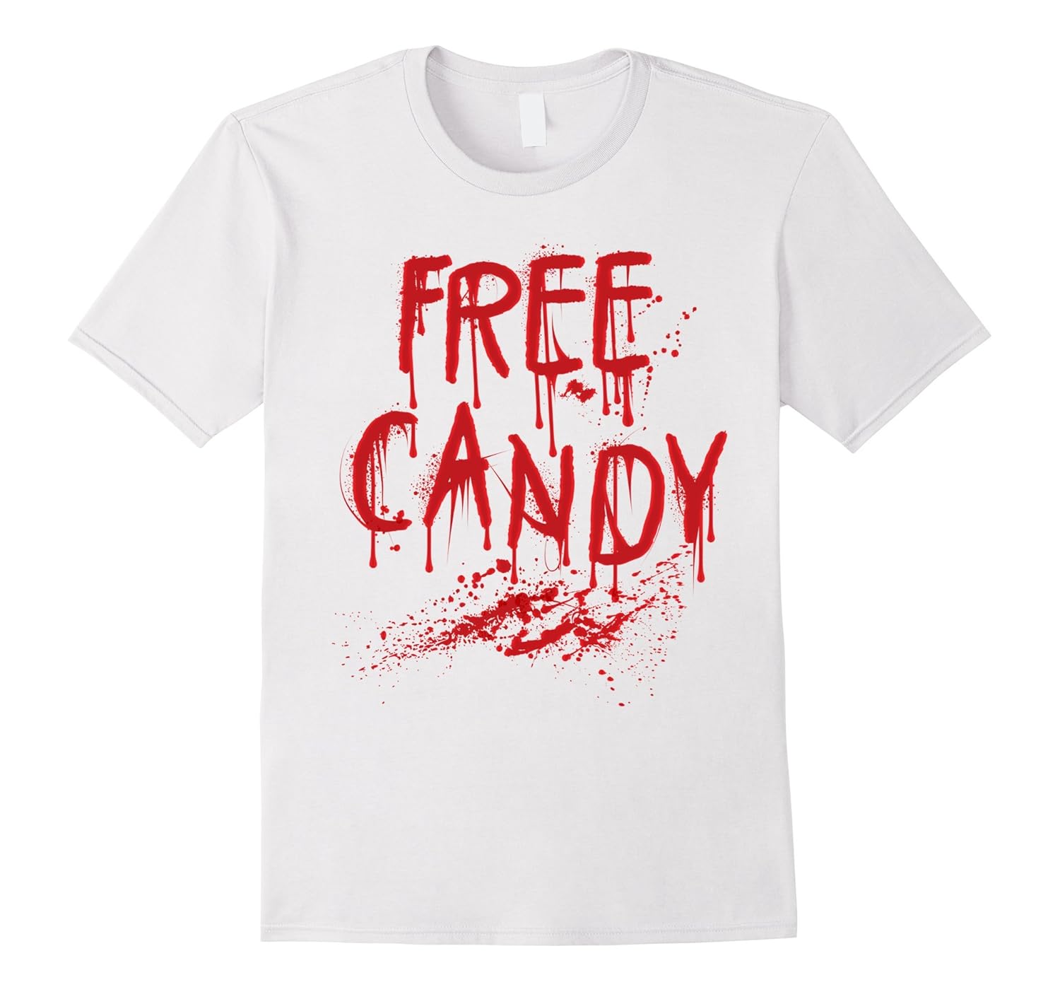 Solid colors: 100% Cotton; Heather Grey: 90% Cotton, 10% Polyester; All Other Heathers: 65% Cotton, 35% Polyester, Imported, Machine wash cold with like colors, dry low heat, This scary halloween shirt says Free Candy written in blood and blood splatter. Making it an fun and scary halloween t shirt for kids, men, and women! This bloodied shirt is a must have for trick or treat and candy on Halloween night!, These scary shirts are fitted, please order a size up for a looser fit. This trick t shirt on Halloween for kids or adults that hand out candy! Makes a great halloween costumes work appropriate halloween costumes for work, or office halloween costumes. Lightweight, Classic fit, Double-needle sleeve and bottom hem