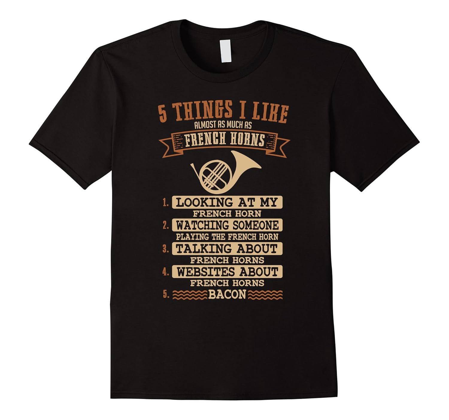 Solid colors: 100% Cotton; Heather Grey: 90% Cotton, 10% Polyester; All Other Heathers: 65% Cotton, 35% Polyester, Imported, Machine wash cold with like colors, dry low heat, Trendy, brightly colored graphics. A unique gift idea for a friend or family member. Wear it day or night for an instantly awesome look!, Printed using the latest in garment printing technology. French Horn – 5 Things That I Like As Much As.. T-Shirt – Makes A Perfect Gift. Lightweight, Classic fit, Double-needle sleeve and bottom hem