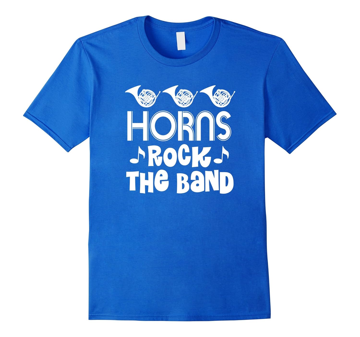 100% Cotton, Imported, Machine wash cold with like colors, dry low heat, Funny horns rock the band music shirts with silhouette instrument and musical notes design for the horn musician. French horn music apparel clothing gift products with funny quotes and designs. Lightweight, Classic fit, Double-needle sleeve and bottom hem