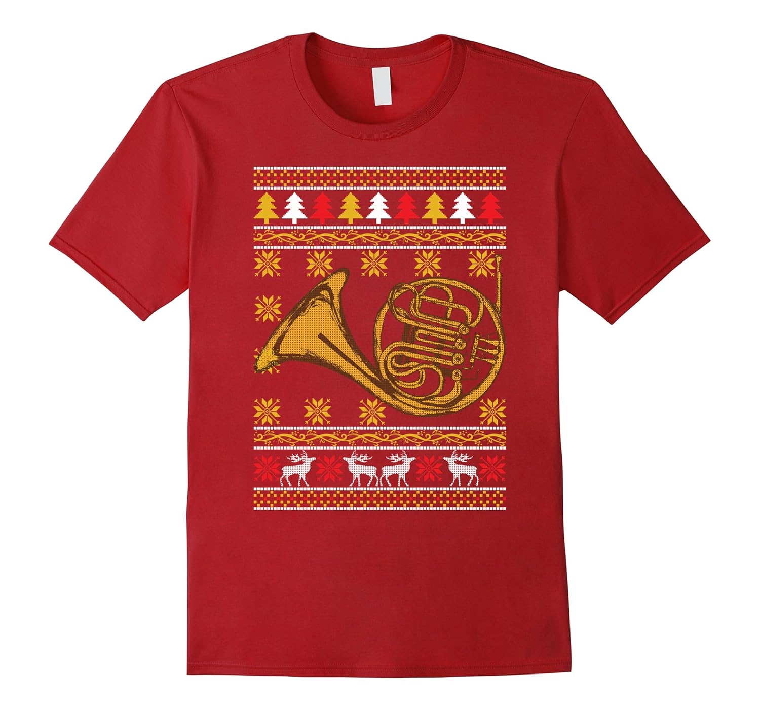 French Horn Ugly Christmas Sweater Holiday T-Shirt-ANZ