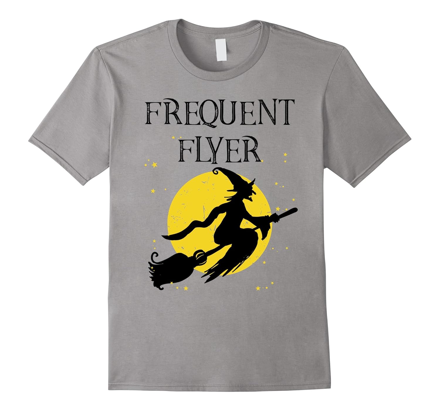 Solid colors: 100% Cotton; Heather Grey: 90% Cotton, 10% Polyester; All Other Heathers: 65% Cotton, 35% Polyester, Imported, Machine wash cold with like colors, dry low heat, Frequent Flyer Witch Shirt, Funny Frequent Flyer Halloween Witch Shirt, Lightweight, Classic fit, Double-needle sleeve and bottom hem