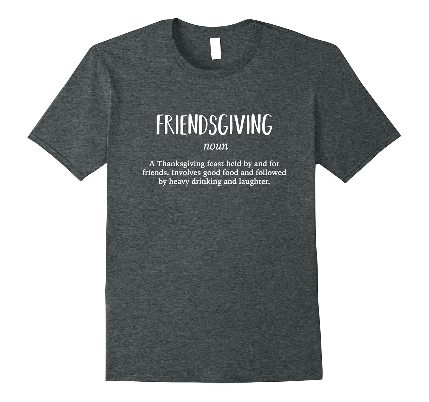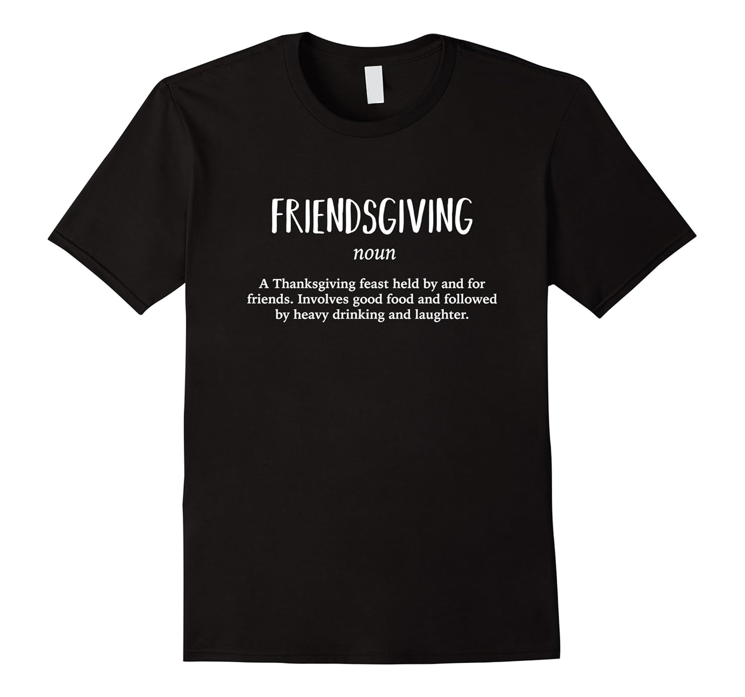 Solid colors: 100% Cotton; Heather Grey: 90% Cotton, 10% Polyester; All Other Heathers: 65% Cotton, 35% Polyester, Imported, Machine wash cold with like colors, dry low heat, This funny tee shirt defines friendsgiving as a feast held by and for friends involves good food and followed by heavy drinking and laughter. Perfect for men, women, and kids who can”t wait to eat turkey this fall 2017!, Makes a great gift or present for friends and family, especially college students and young adults who are away from home. These shirts are slim fit; please size up for a looser fit. Lightweight, Classic fit, Double-needle sleeve and bottom hem