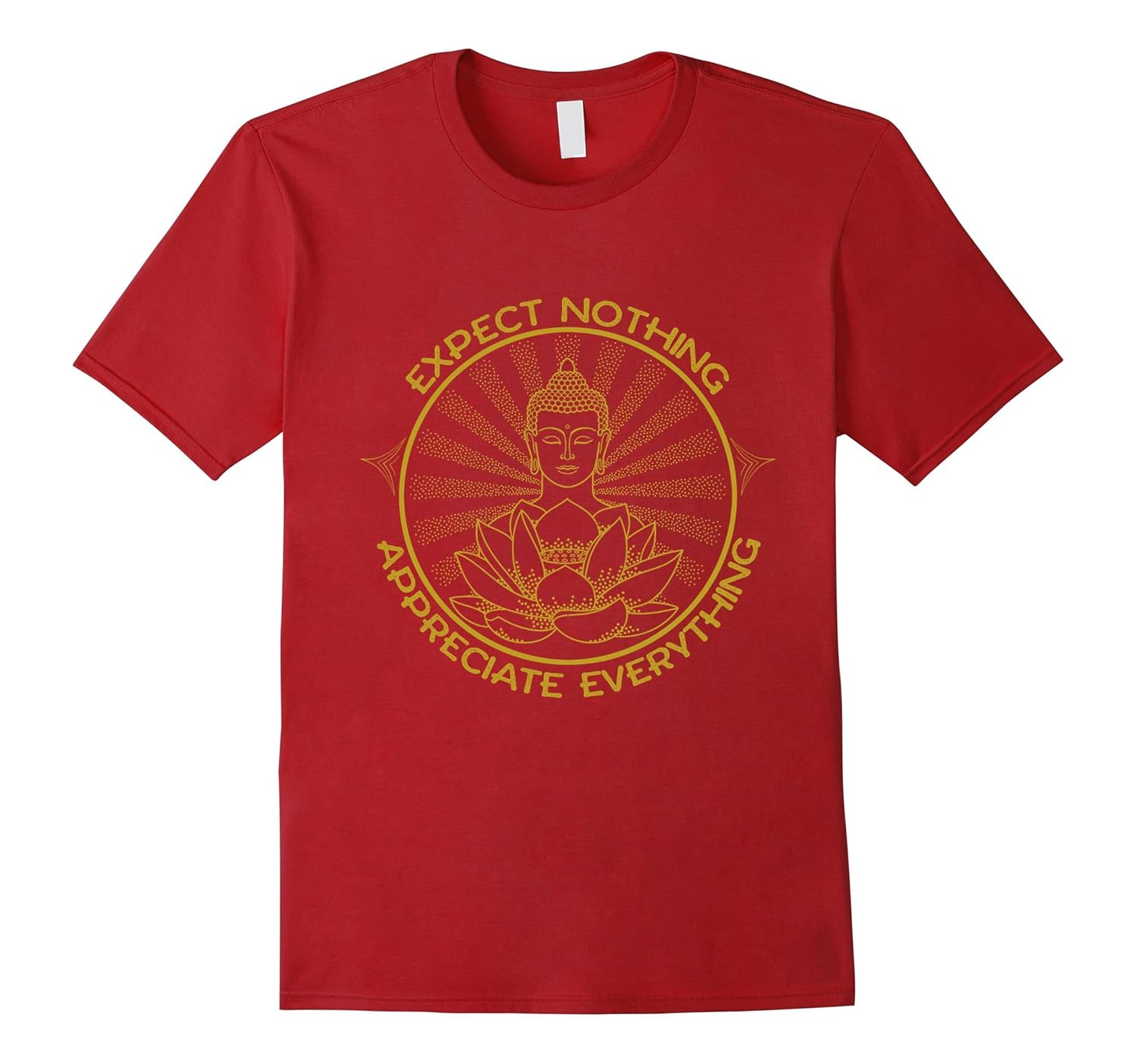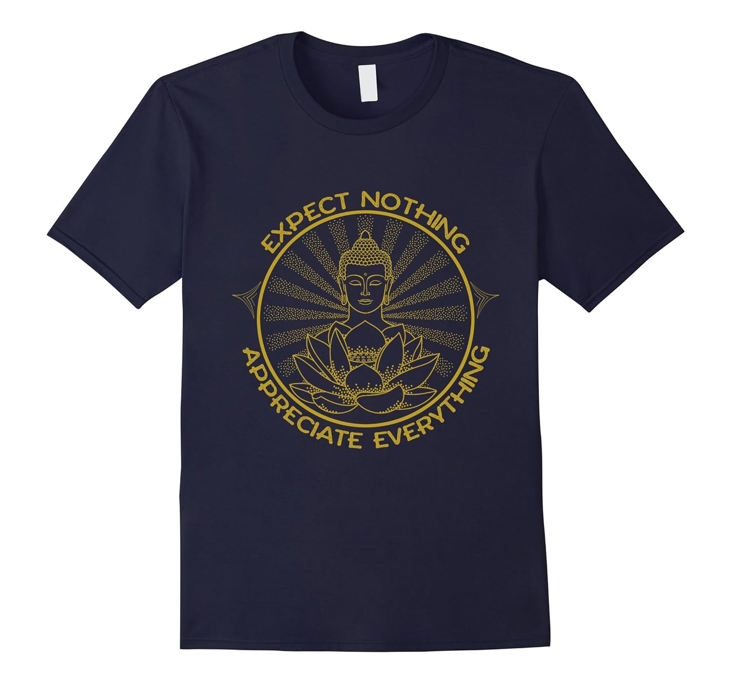 Solid colors: 100% Cotton; Heather Grey: 90% Cotton, 10% Polyester; All Other Heathers: 65% Cotton, 35% Polyester, Imported, Machine wash cold with like colors, dry low heat, This Buddha quote “expect nothing, appreciate everything” T-shirt is perfect for meditation, yoga class or any occasion you want to share a positive message. This comfortable fun t-shirt is an awesome gift for the buddhist in your life. Cool design in gold font. Order a size larger. Lightweight, Classic fit, Double-needle sleeve and bottom hem