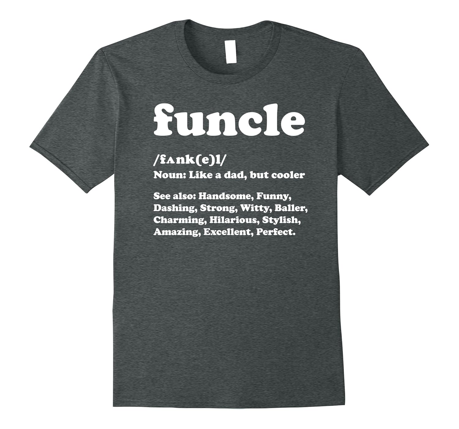 Solid colors: 100% Cotton; Heather Grey: 90% Cotton, 10% Polyester; All Other Heathers: 65% Cotton, 35% Polyester, Imported, Machine wash cold with like colors, dry low heat, Funcle T Shirt Like A Dad Only Cooler, Get this hilarious “Funcle Definition Shirt”, for the best funkle uncle ever, get this with your funcle gifts, mug or merchandise, our special fun uncle tee shirt is bound to make him, your family and friends LOL, First Time Uncle Gifts, Great gift idea shirts for any new uncle or uncles, who are expecting a nephew or niece, get these mens “Funcle Tshirts for Men” for the fun uncle in your life, great t-shirt as a birthday or Christmas gift idea too, Lightweight, Classic fit, Double-needle sleeve and bottom hem