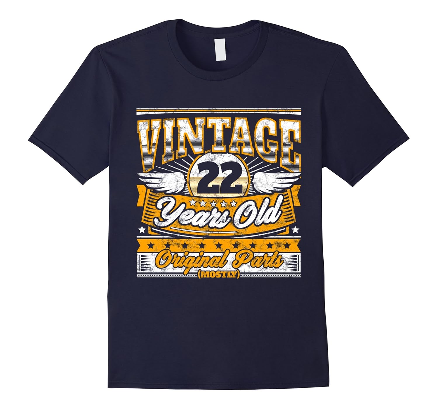 Solid colors: 100% Cotton; Heather Grey: 90% Cotton, 10% Polyester; All Other Heathers: 65% Cotton, 35% Polyester, Imported, Machine wash cold with like colors, dry low heat, Funny 22nd Birthday Shirt: Vintage 22 Years Old. Original parts (mostly). Funny birthday gag tee shirt that makes a great birthday gift. Get your funny b-day t-shirt now!, This design is crafted for a birthday boy or girl who digs humor, fun, funny sayings, a good joke or gag and vintage distressed graphics. Lightweight, Classic fit, Double-needle sleeve and bottom hem