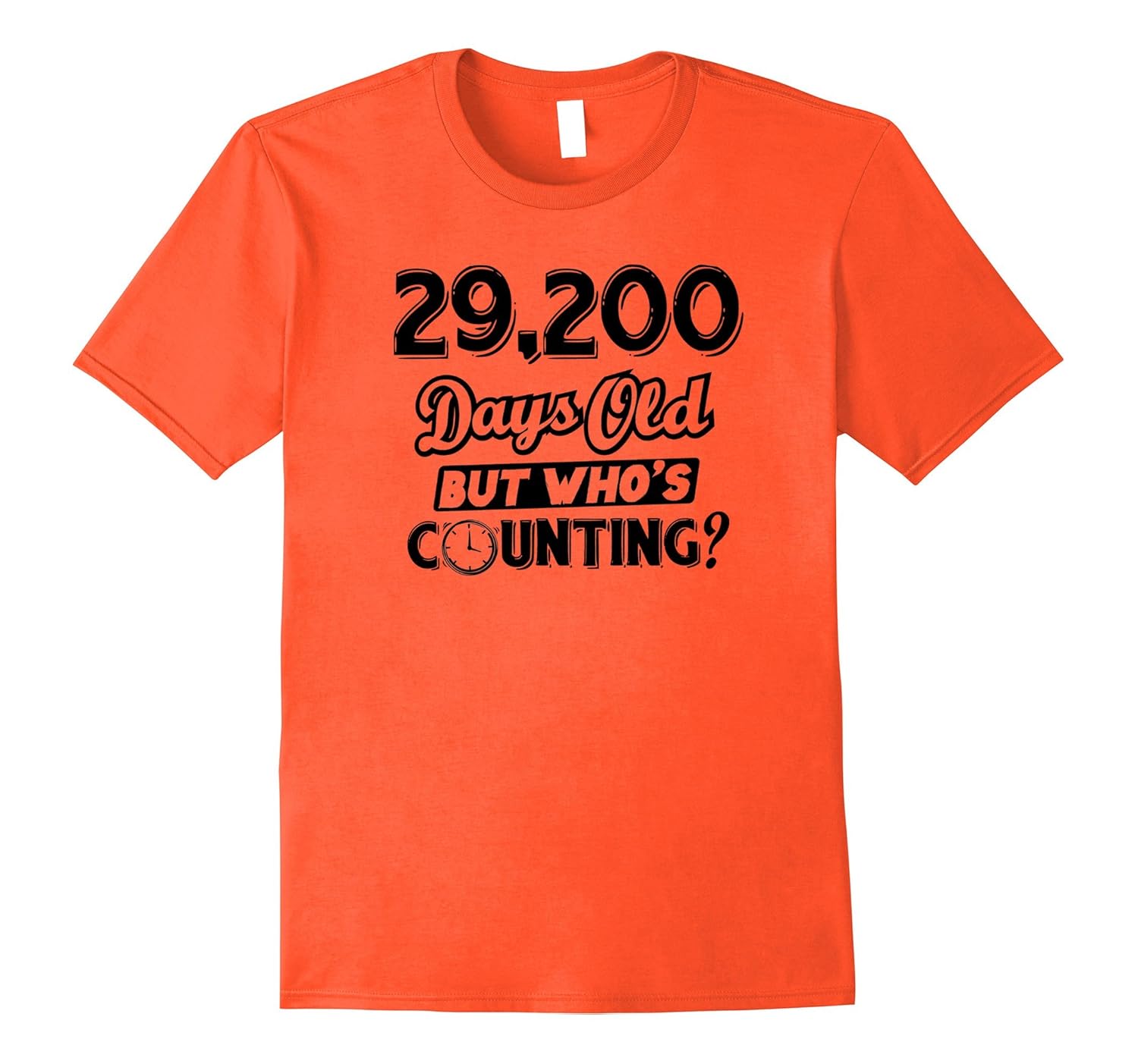Solid colors: 100% Cotton; Heather Grey: 90% Cotton, 10% Polyester; All Other Heathers: 65% Cotton, 35% Polyester, Imported, Machine wash cold with like colors, dry low heat, 29,200 Days Old But Who”s Counting. is a funny novelty tee for those turning 80 years old! Math teachers, nerds, geeks will love this hilarious style outfit when they try to calculate how old you really are! Get compliments and; good laughs with this!, A great 80th birthday gift idea for him or her to celebrate their age! A cool Halloween costume or a fun Christmas present for your awesome family and; friends who enjoys great gag jokes! Get your hands on this sarcastic tshirt now!, Lightweight, Classic fit, Double-needle sleeve and bottom hem