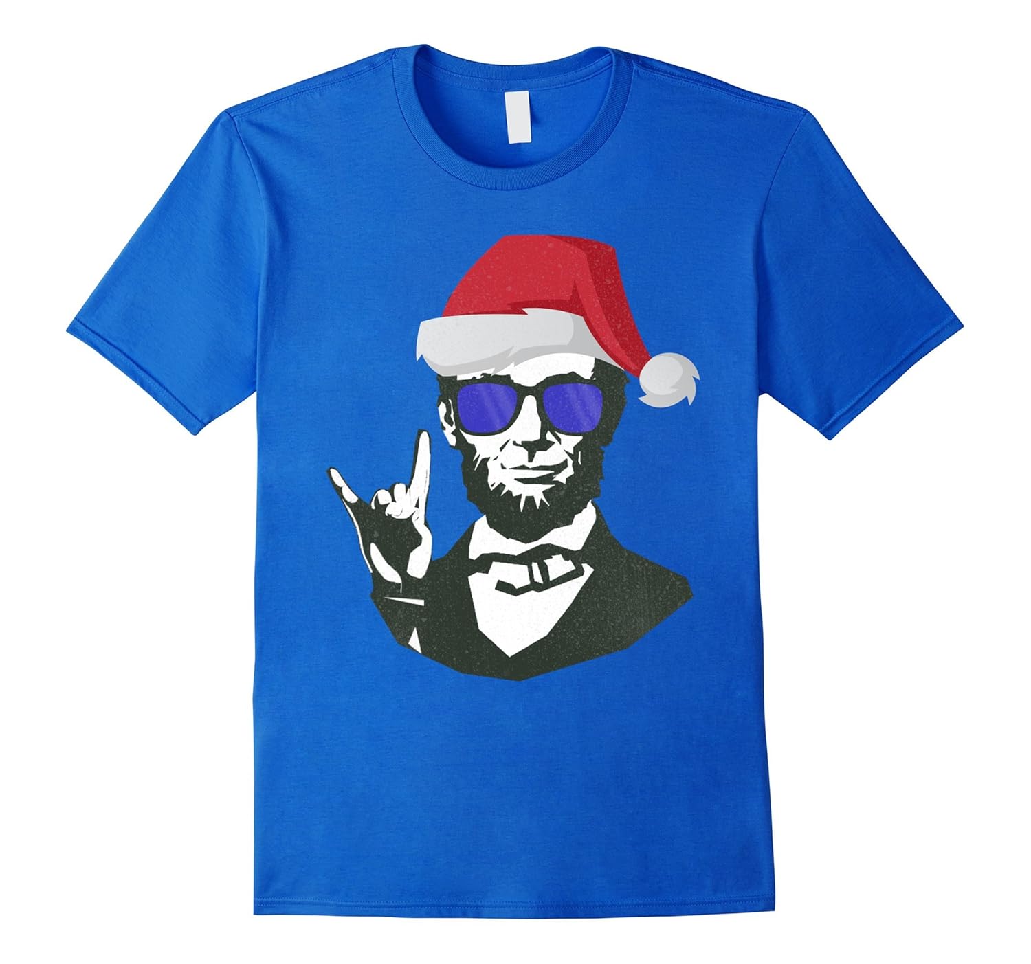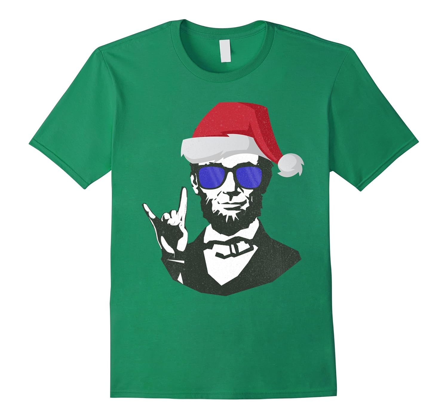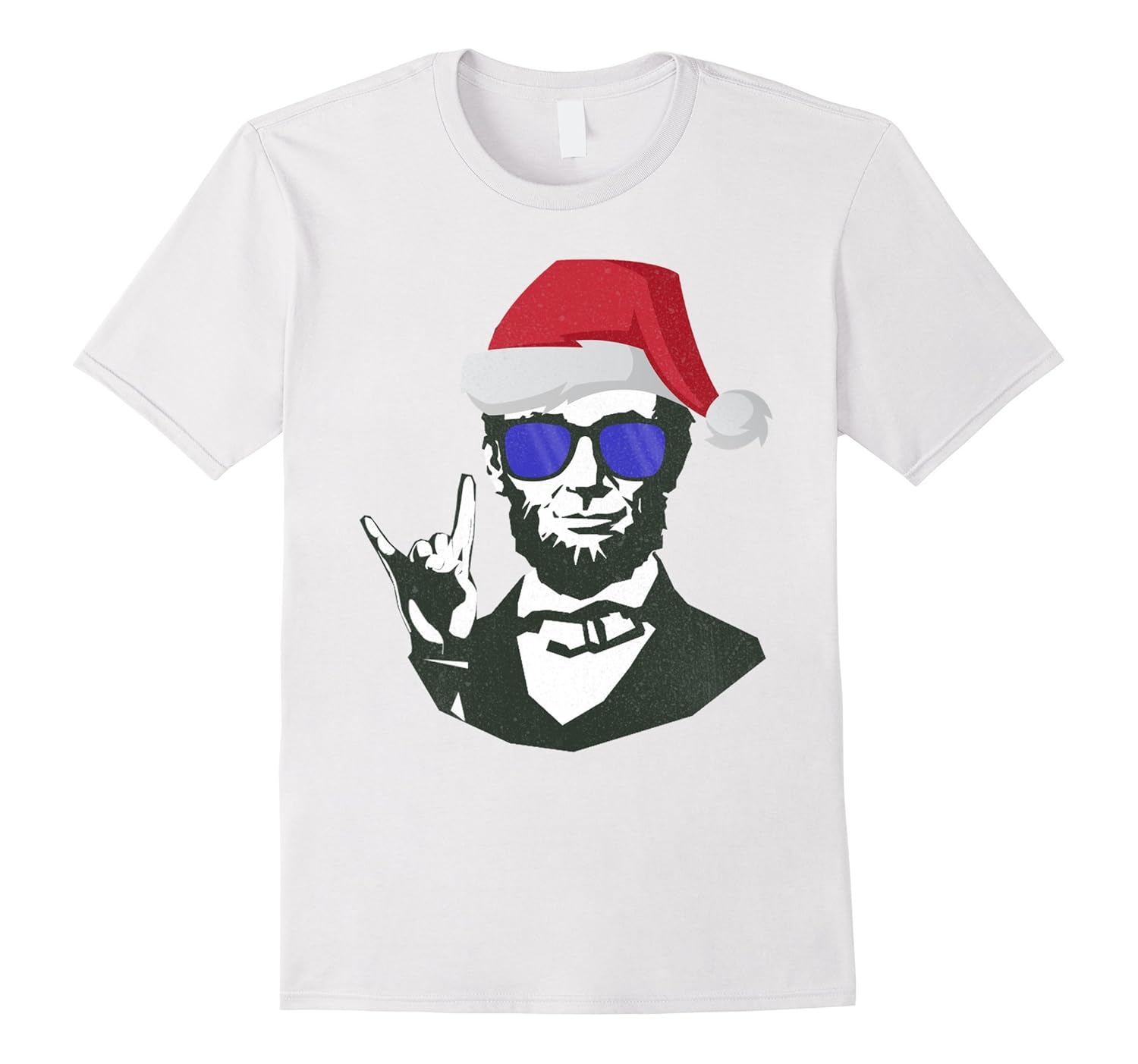Solid colors: 100% Cotton; Heather Grey: 90% Cotton, 10% Polyester; All Other Heathers: 65% Cotton, 35% Polyester, Imported, Machine wash cold with like colors, dry low heat, Are you a patriot who loves Christmas and original designs. Are you looking for a funny 4th of july shirt. Look no further than this Abraham Lincoln funny shirt, featuring honest abe with cool blue sunglasses and Santa hat! Perfect for Xmas / Party, Makes a great funny gift for adults, men, women, kids, boys, girls, your uncle or aunt, and even children who love Christmas and Rock On!, Lightweight, Classic fit, Double-needle sleeve and bottom hem
