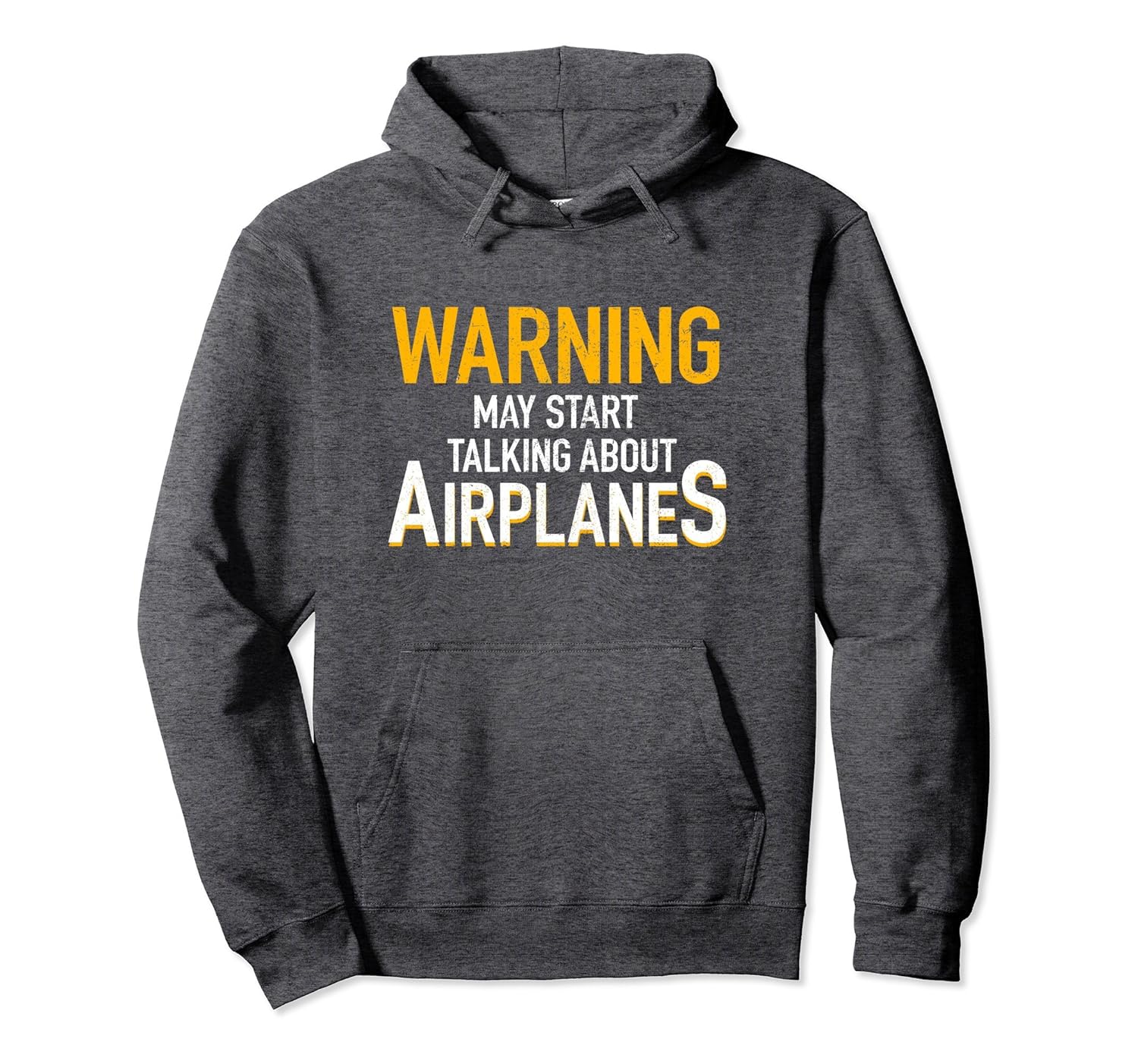 Solid colors: 80% Cotton, 20% Polyester; Heather Grey: 78% Cotton, 22% Poly; Dark Heather: 50% Cotton, 50% Polyester; Imported; Machine wash cold with like colors, dry low heat; This Warning May Start Talking About Airplanes Hoodie designed by Airplane Pilot T-Shirts Andamp; Apparel makes perfect gift idea for any aviation enthusiasts who loves flying or Pilots who flies RC planes with electric or jet turbine engine; Any pilot, student, flight instructor or person who loves flying military or commercial jet airplanes will love this funny saying hoodie! Perfect Aviation Day Gift for Men, Women and Kids; 8.5 oz, Classic fit, Twill-taped neck