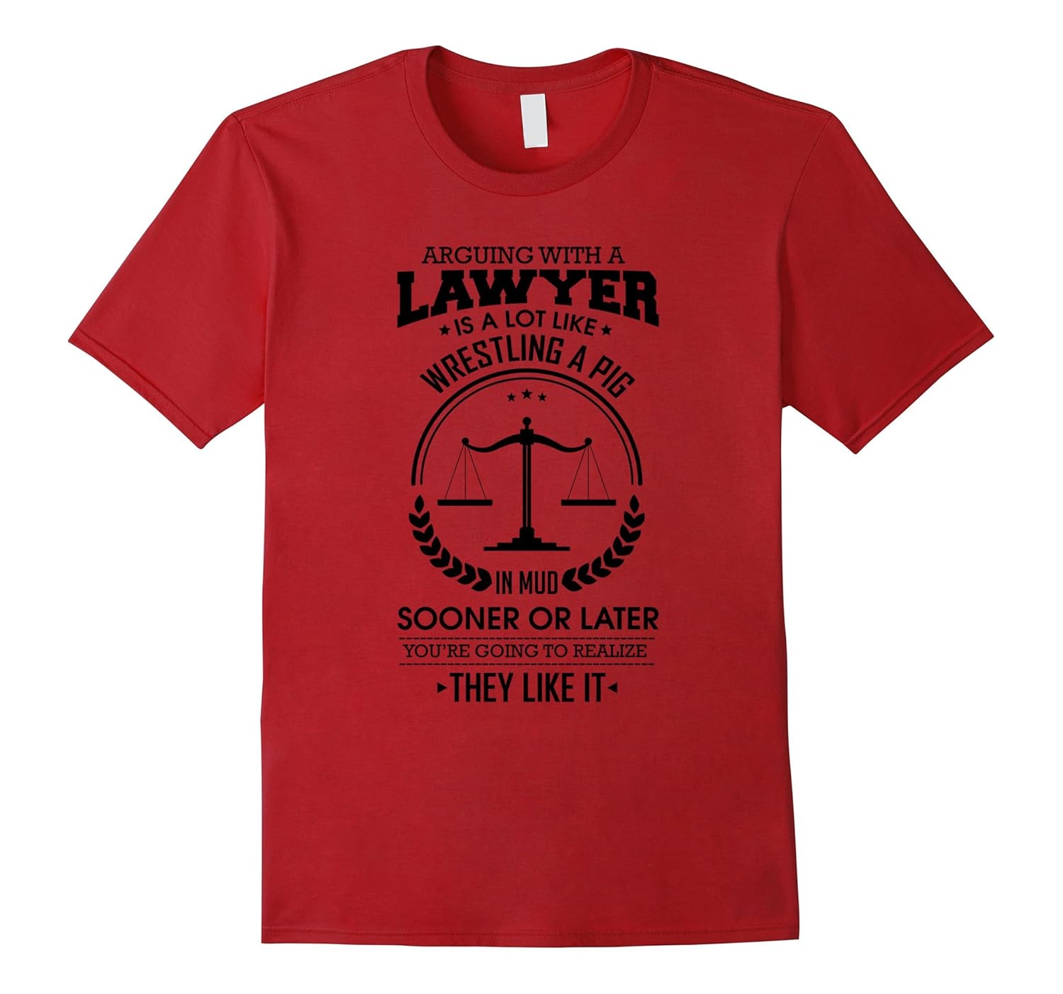 Solid colors: 100% Cotton; Heather Grey: 90% Cotton, 10% Polyester; All Other Heathers: 65% Cotton, 35% Polyester, Imported, Machine wash cold with like colors, dry low heat, The joke is on the lawyer in your life with this funny shirt that reads: Arguing with a Lawyer is a lot like wrestling with a pig in mud. Sooner or later you”re going to realize they like it. This funny attorney shirt makes a great graduation gift for law students or a gift for birthdays, Christmas, the holidays and other gift-giving occasions. Lightweight, Classic fit, Double-needle sleeve and bottom hem