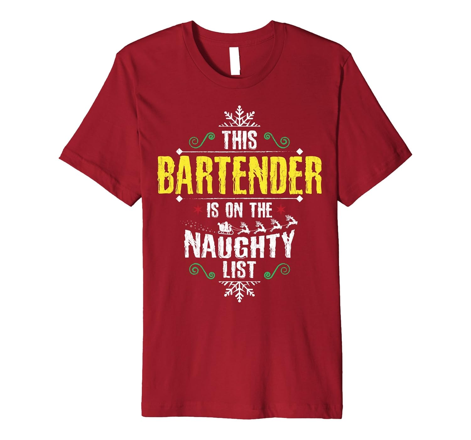 Funny Bartender Naughty List Christmas Themed T-Shirt-ANZ