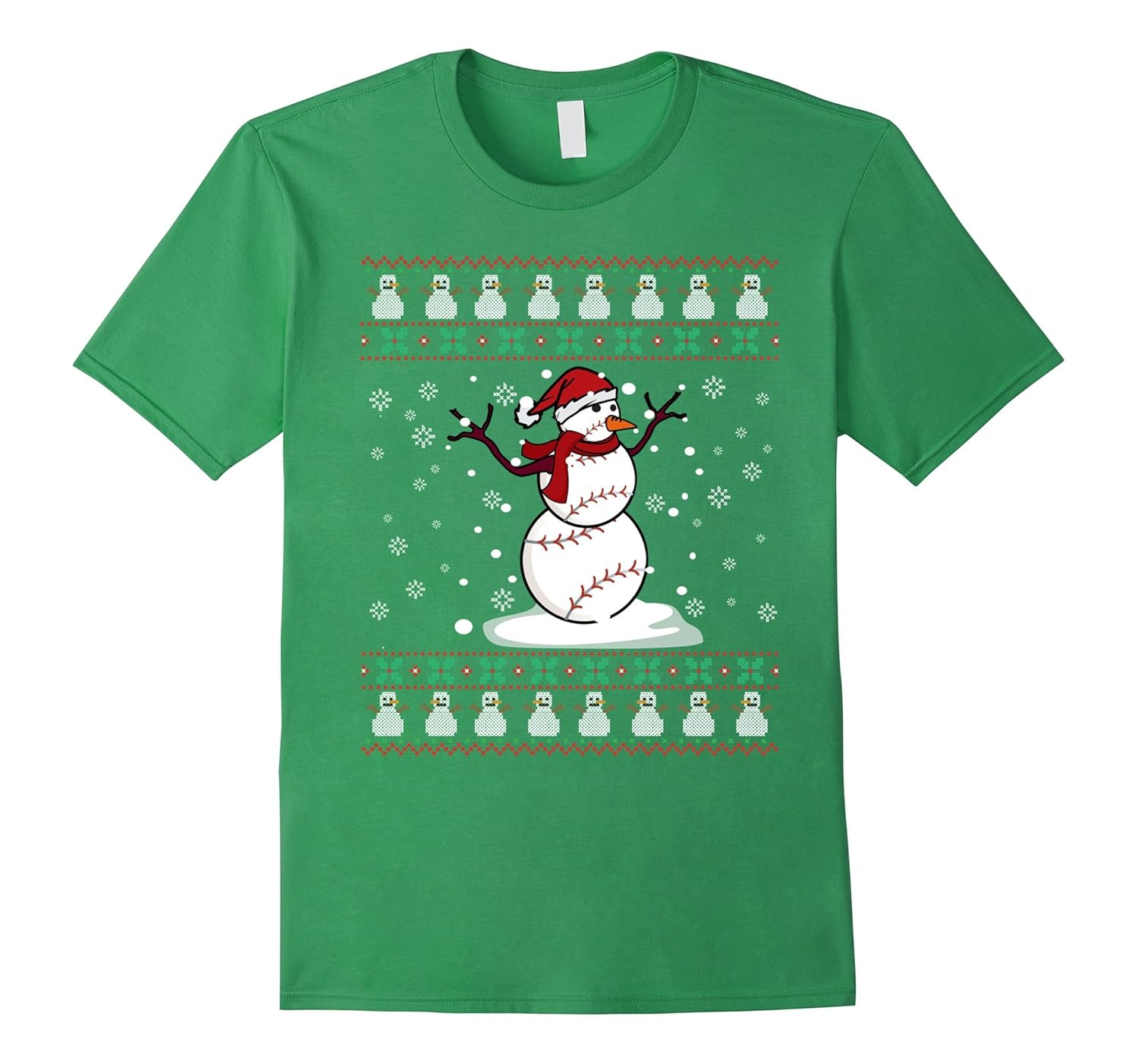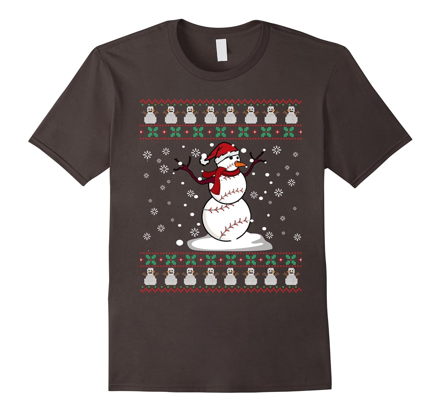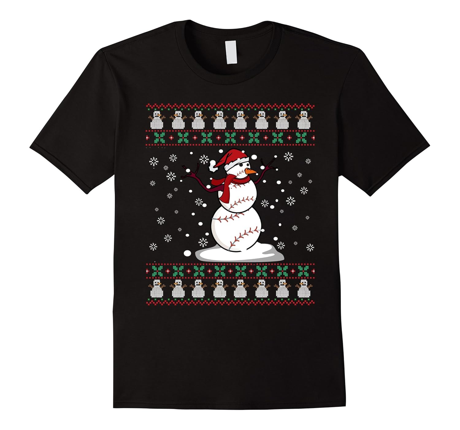 Funny Baseball Ball Snowman Santa Christmas Ugly Sweater Tee-ANZ