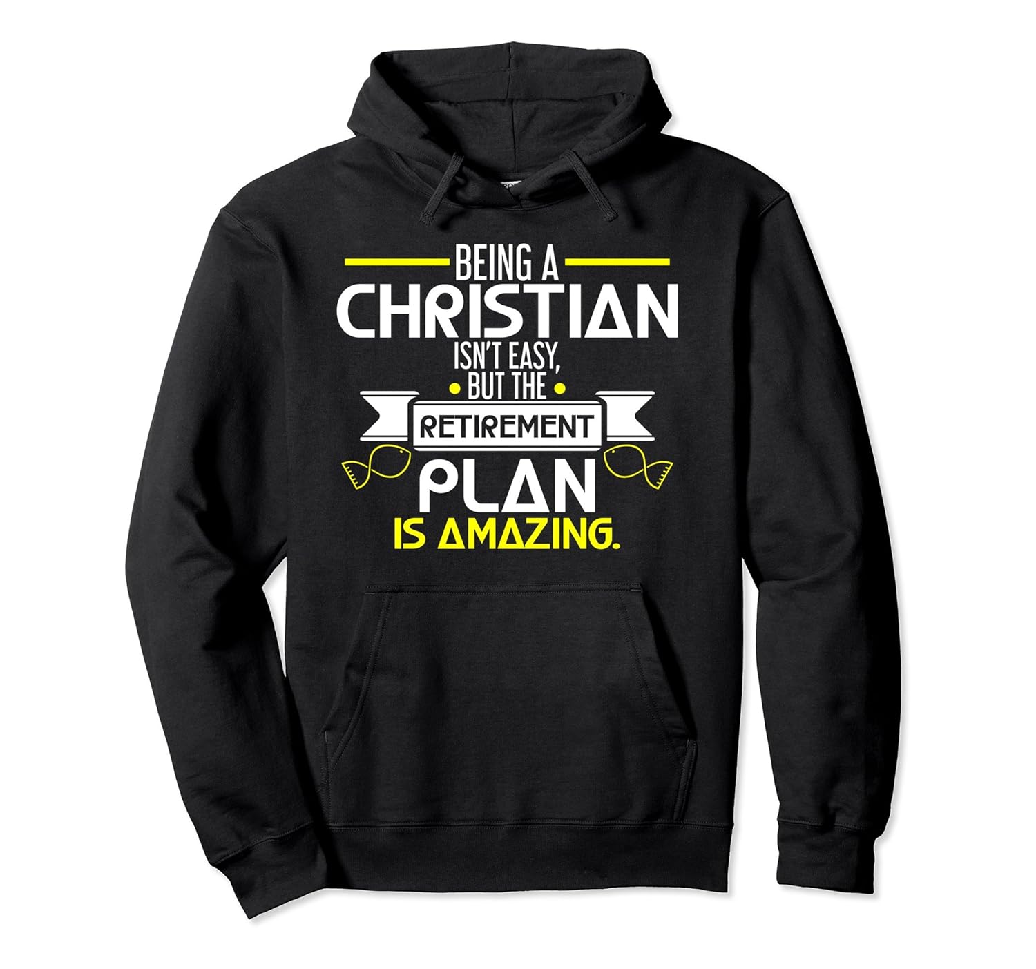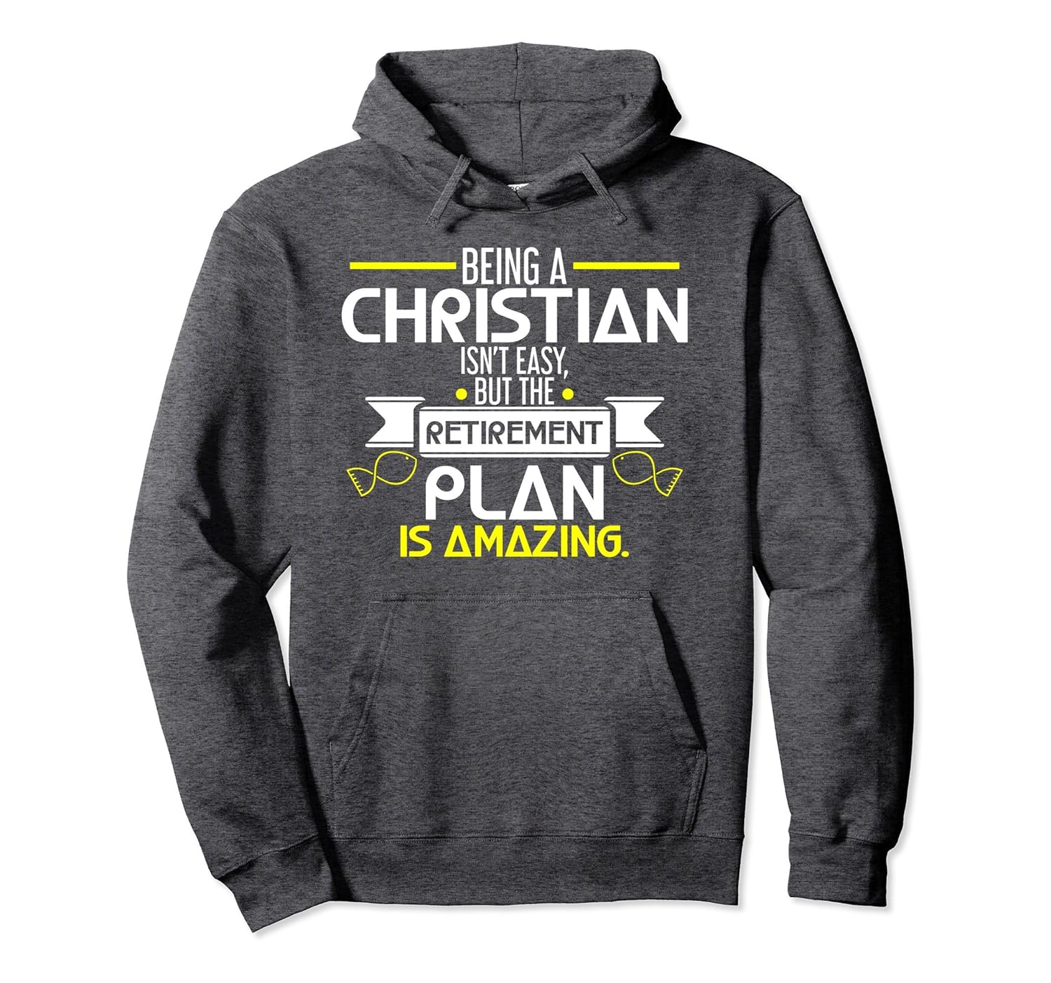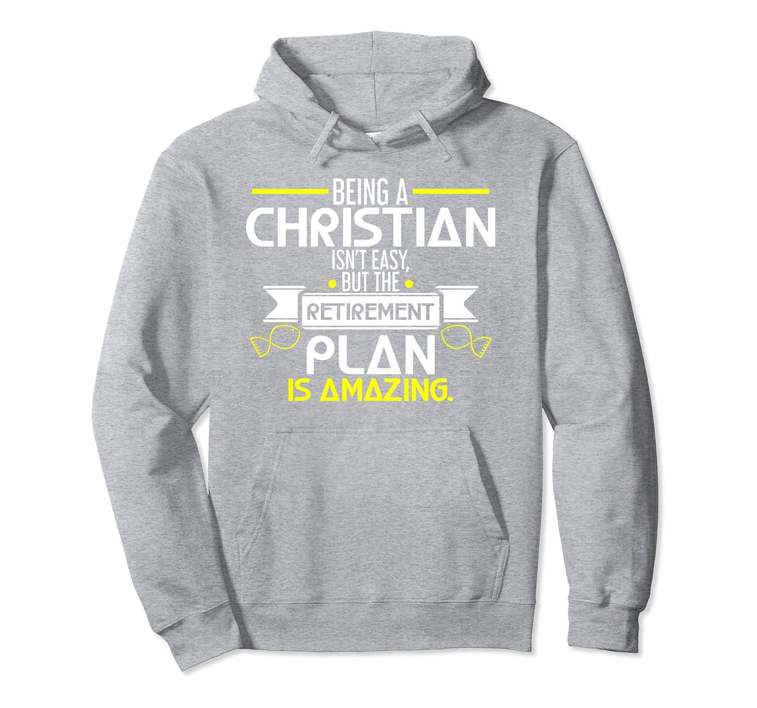 Solid colors: 80% Cotton, 20% Polyester; Heather Grey: 78% Cotton, 22% Poly; Dark Heather: 50% Cotton, 50% Polyester; Imported; Machine wash cold with like colors, dry low heat; Being a Christian is truly not easy but the retirement plan is amazing by having a worthy life after all the sacrifices and hard work you have done for other people and all the good deeds youve done will be remembered by many.; Share the good side of being a Christian with this witty and cute typography quote printed hoodie for Christians who have an amazing plan for retirement in the near future. Grab yours now until supplies last and enjoy this comfy hoodie!; 8.5 oz, Classic fit, Twill-taped neck