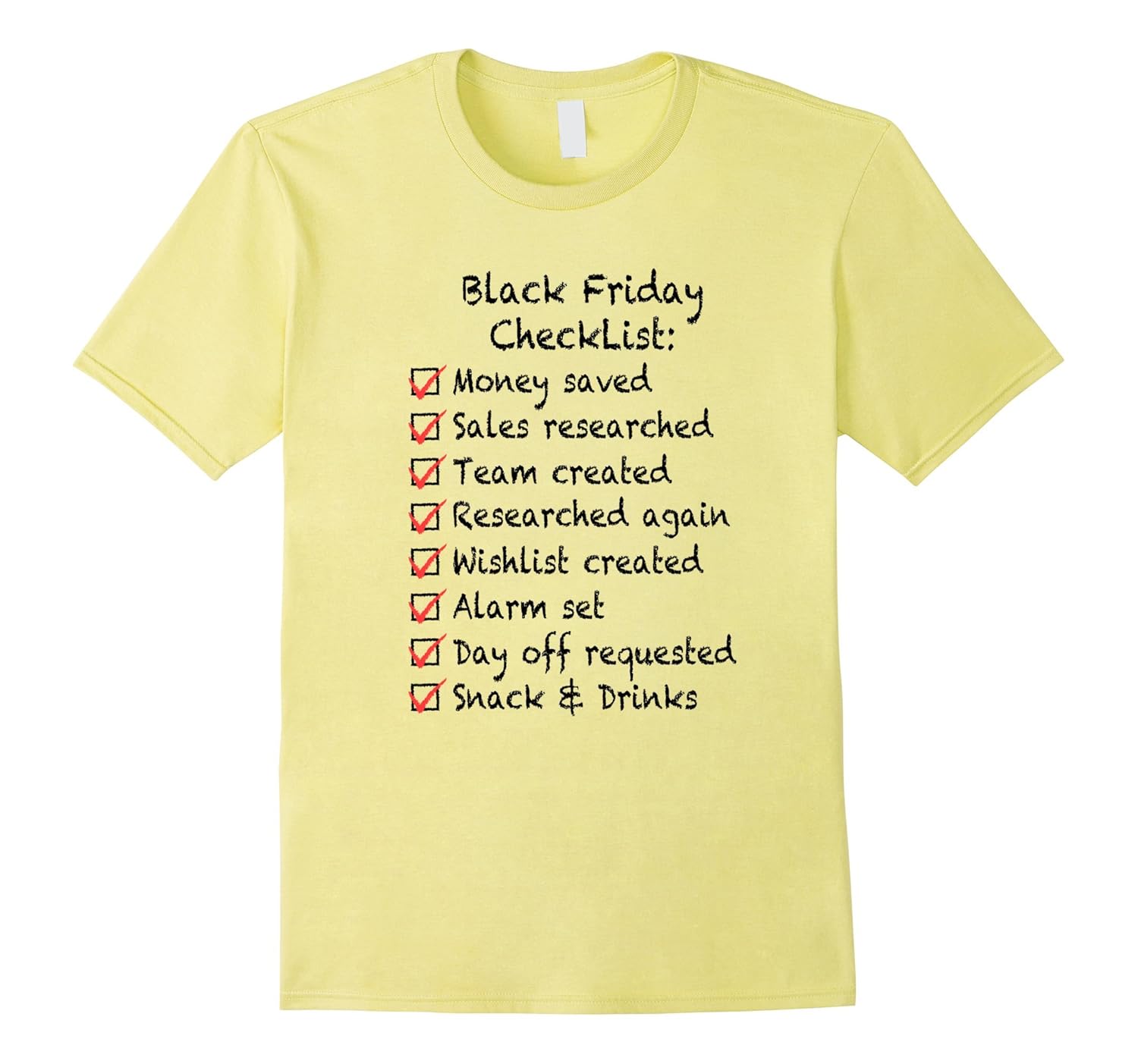 Solid colors: 100% Cotton; Heather Grey: 90% Cotton, 10% Polyester; All Other Heathers: 65% Cotton, 35% Polyester, Imported, Machine wash cold with like colors, dry low heat, Are you read for Black Friday . This Funny Black Friday Checklist Tee shirt will help you to prepare your checklist for shopping. People around you will like this funny and cute shirt. Best gift idea for Black Friday or Thanksgiving. This Funny Black Friday Checklist Shopping Team Gift Shirt is designed and printed to be fitted. For more loose, please order a size up. Lightweight, Classic fit, Double-needle sleeve and bottom hem