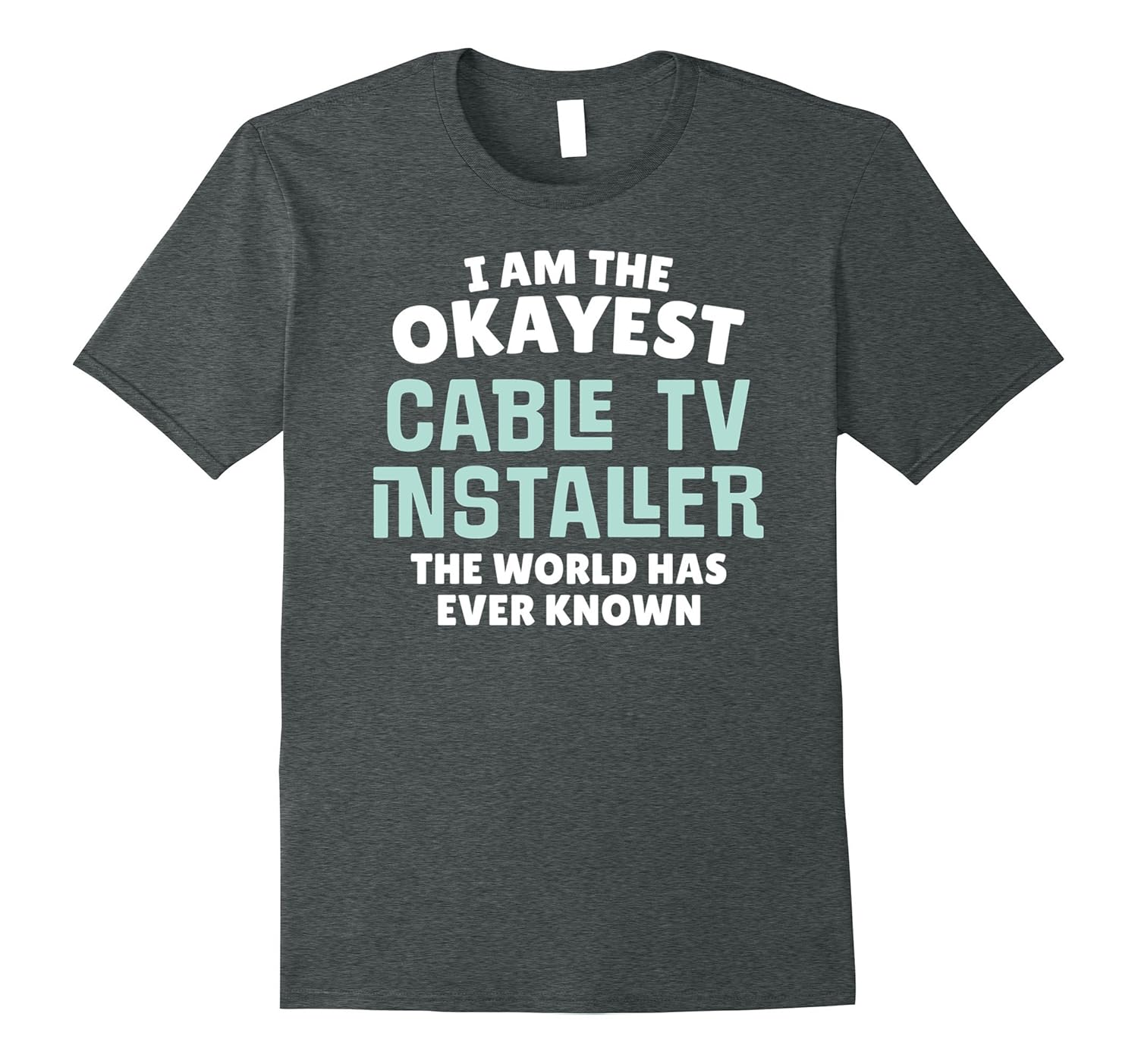 Solid colors: 100% Cotton; Heather Grey: 90% Cotton, 10% Polyester; All Other Heathers: 65% Cotton, 35% Polyester, Imported, Machine wash cold with like colors, dry low heat, Great t-shirt for Cable TV Installer who like wearing Cable TV Installer shirts and apparel! Makes a great birthday gift, Christmas present or coworker office party gift!, I”m the Okayest Cable TV Installer the World Has Ever Known! Cute and humorous occupation gift for Cable TV Installers with a sense of humor!, Lightweight, Classic fit, Double-needle sleeve and bottom hem