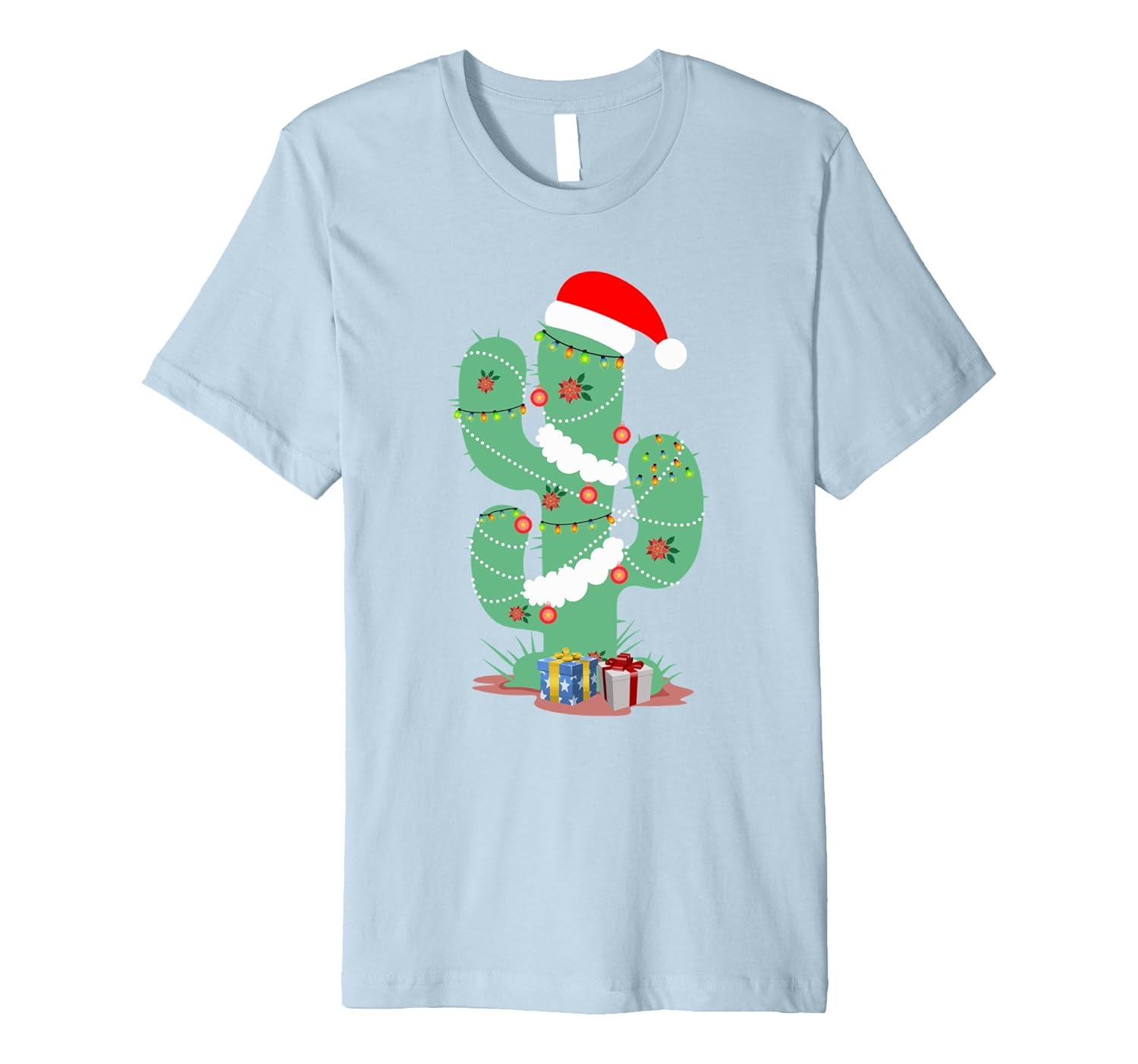 Solid colors: 100% Cotton; Heather Grey: 90% Cotton, 10% Polyester; All Other Heathers: 58% Cotton, 42% Polyester; Imported; Machine wash cold with like colors, dry low heat; This funny Cactus Tree With Presents – Vacation T-Shirt is made for all people who love cactus, christmas and are spanish and mexican lovers. On the tee you can see a cactus with christmas lights, santa hat and presents on the bottom.; Fit: Slim (consider ordering a larger size for a looser fit); Its a great gift from friends, kids, mom or dad for birthdays, christmas, mothers or fathers day. Available in mens, womens and youth sizes.; This premium t-shirt is made of lightweight fine jersey fabric