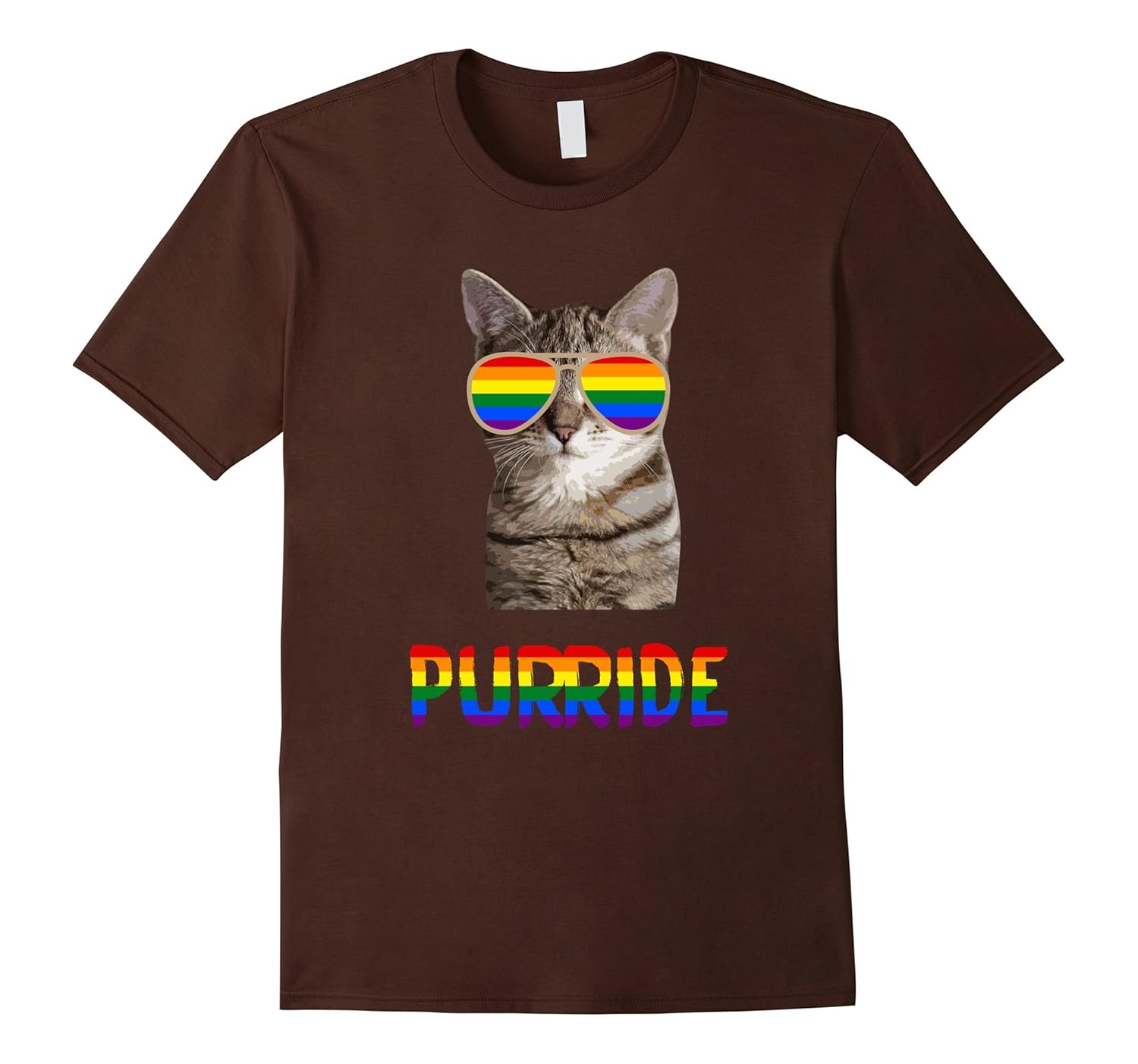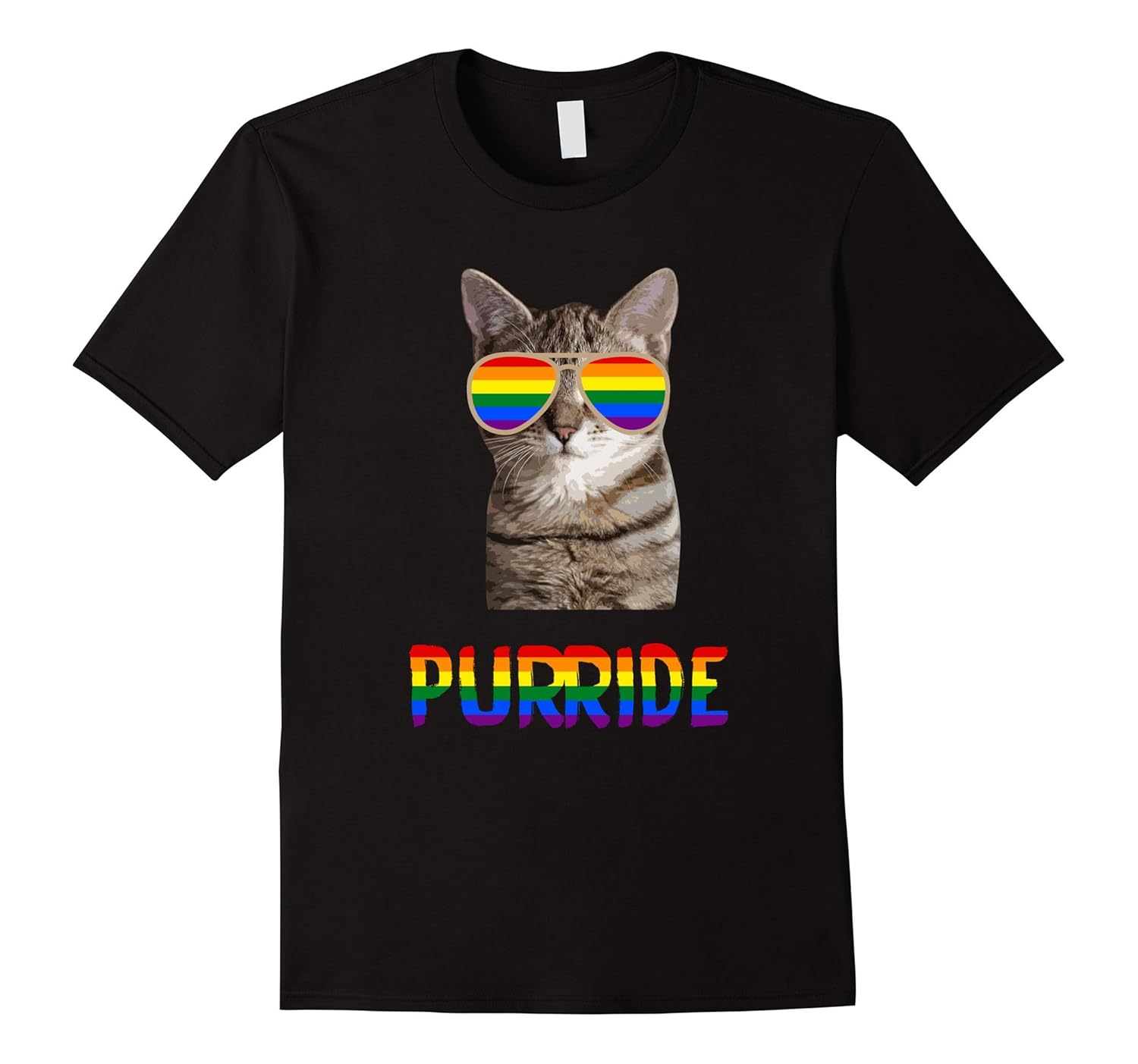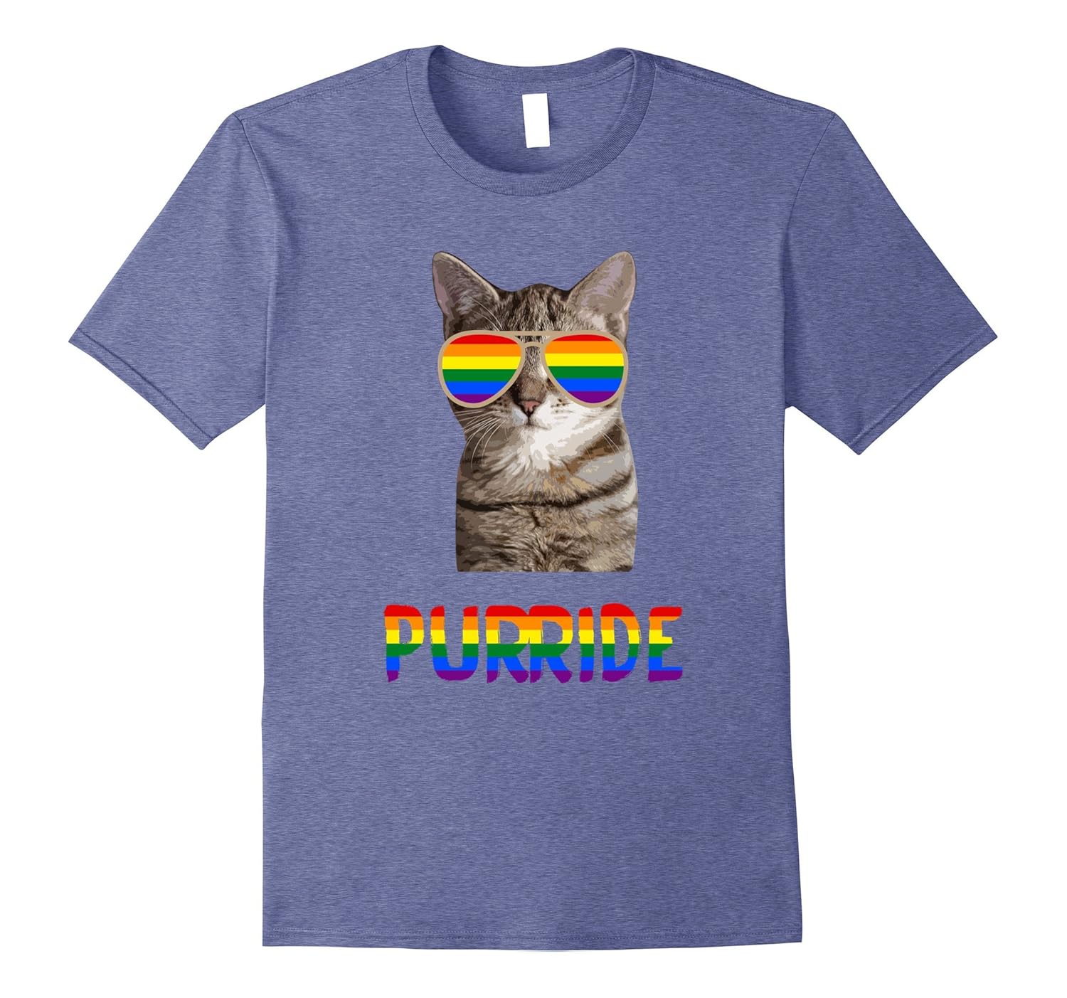 Solid colors: 100% Cotton; Heather Grey: 90% Cotton, 10% Polyester; All Other Heathers: 65% Cotton, 35% Polyester, Imported, Machine wash cold with like colors, dry low heat, Cat tshirt design with the Gay Pride Flag and sunglasses. A perfect gift for any occasion. The rainbow flag, commonly the gay pride flag and LGBT pride flag, is a symbol of lesbian, gay and bisexual pride. All cat lovers can celebrate gay pride in style!, Show your gay pride and also your love for cats with this fun colorful rainbow sunglasses cat tee! meow, feline, meowica, LGBTQ, pansexual, resist, cute, kitten, kitty, cats, love is love, ally, equal, equality, represent with this shirt!, Lightweight, Classic fit, Double-needle sleeve and bottom hem