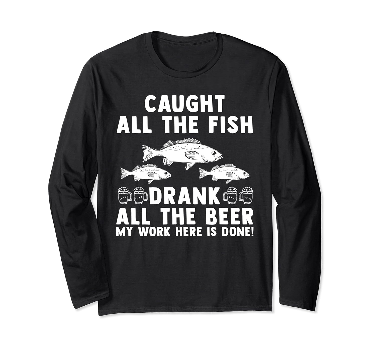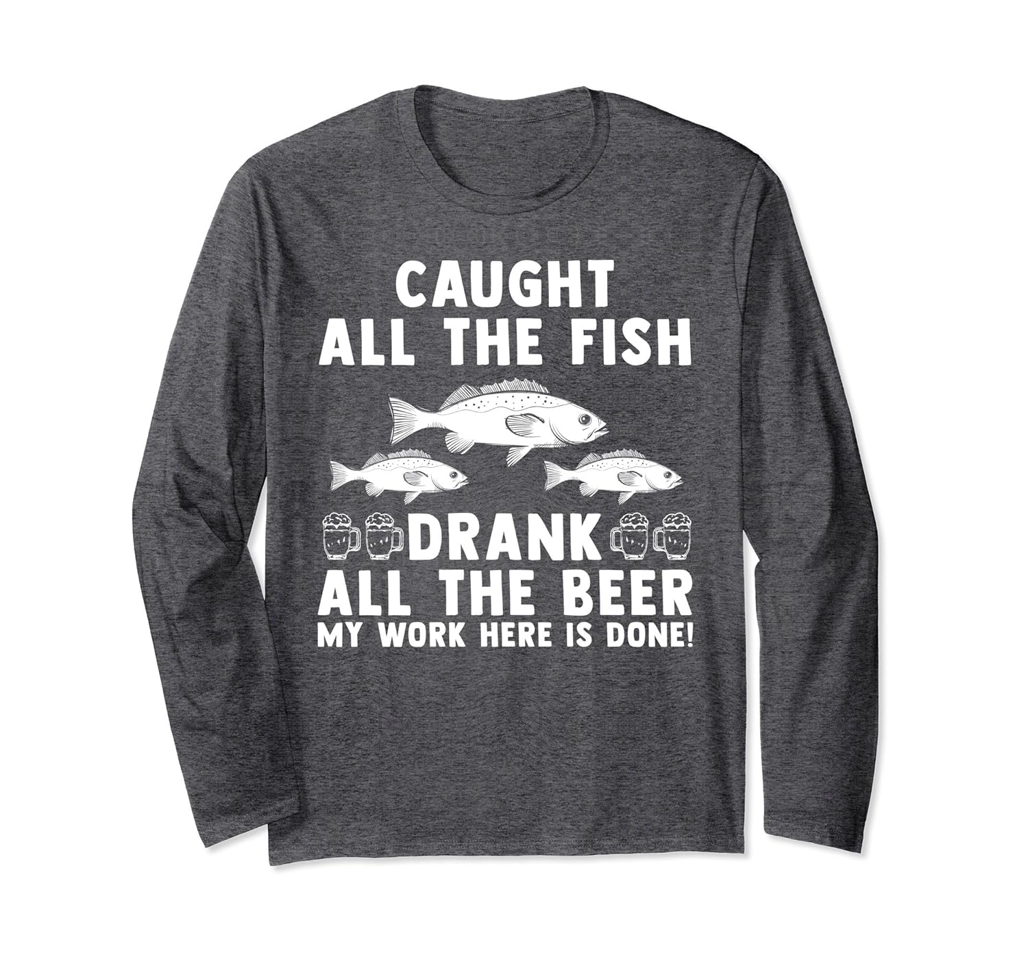 Solid colors: 100% Cotton; Heather Grey: 90% Cotton, 10% Polyester; All Other Heathers: 50% Cotton, 50% Polyester; Imported; Machine wash cold with like colors, dry low heat; Our Funny Caught All The Fish Fishing long sleeve t-shirt is the perfect long sleeved tshirt for fish fans. Its great for men, dads, and fathers. Can also be a good birthday, graduation, or Christmas gift. Excellent for any occasion.; People who like fish, fishermen or anglers will love this long sleeve tee shirt. These are super cool with funny, awesome, or inspirational designs and sayings. Comes with great graphics and a fishing theme; Lightweight, Classic fit, Double-needle sleeve and bottom hem