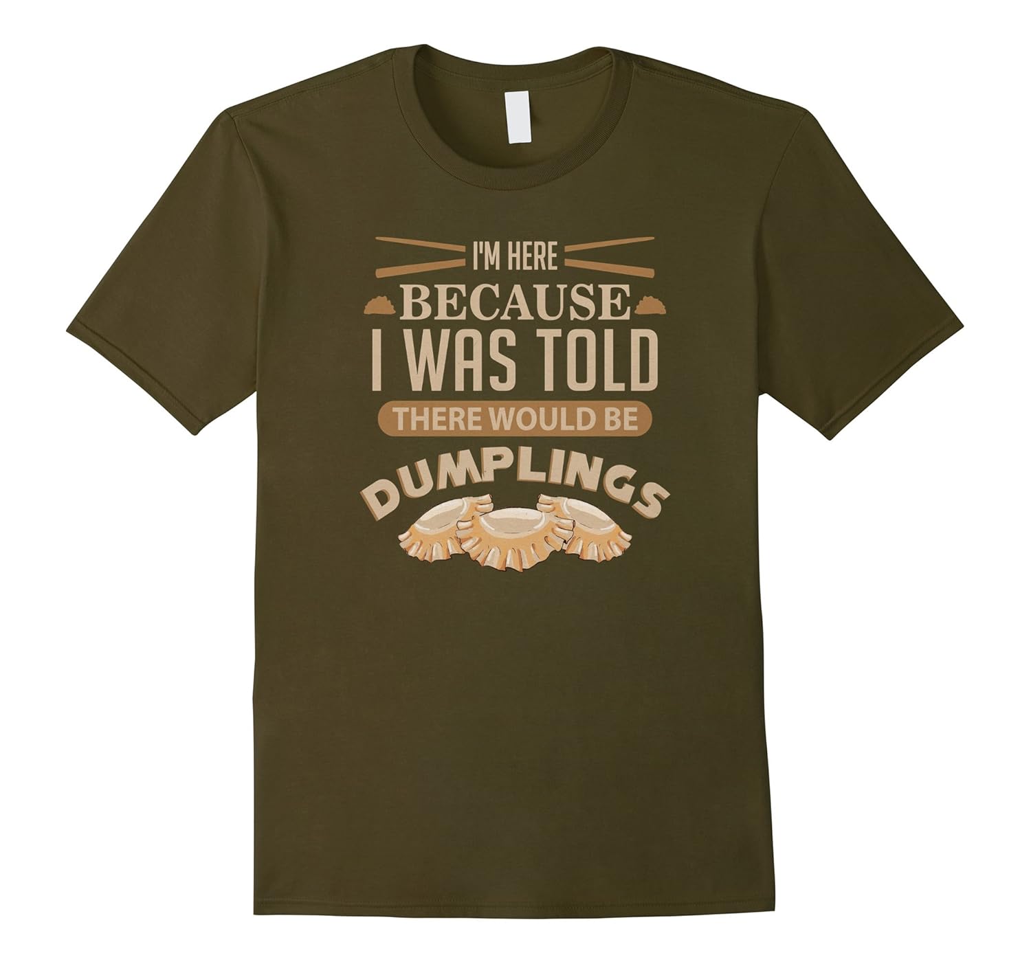 Solid colors: 100% Cotton; Heather Grey: 90% Cotton, 10% Polyester; All Other Heathers: 65% Cotton, 35% Polyester; Imported; Machine wash cold with like colors, dry low heat; Im Here Because I Was Told There Would Be Dumplings Funny Chinese Food T-Shirt. People need to be briefed that youre only around because of dumplings.; This funny shirt will get right to the point of what you wanna say, its perfect for a dumpling fan like you! Give this tee as a gift to friends and loved ones who are dumpling lovers.; Lightweight, Classic fit, Double-needle sleeve and bottom hem