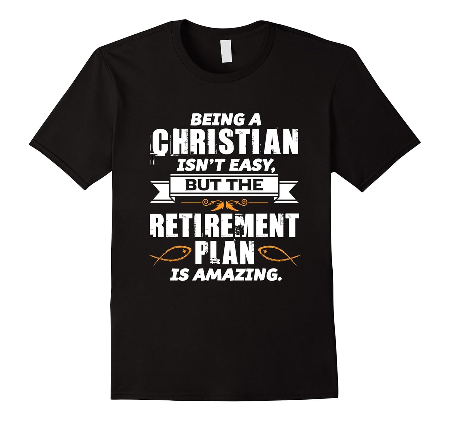 Solid colors: 100% Cotton; Heather Grey: 90% Cotton, 10% Polyester; All Other Heathers: 65% Cotton, 35% Polyester, Imported, Machine wash cold with like colors, dry low heat, Being a Christian isn”t easy but the retirement plan is amazing! This funny Christian t shirt is perfect for anybody who has faith and believes in their Christianity. If you love going to church, reading the bible, praying, or love Jesus, this is for you!, This Being A Christian t shirt is a perfect gift for your husband or wife, pastor, or any Sunday school teachers. Wear this funny church shirt to youth group, church, or school, as a way to show off your faith and humor. Lightweight, Classic fit, Double-needle sleeve and bottom hem