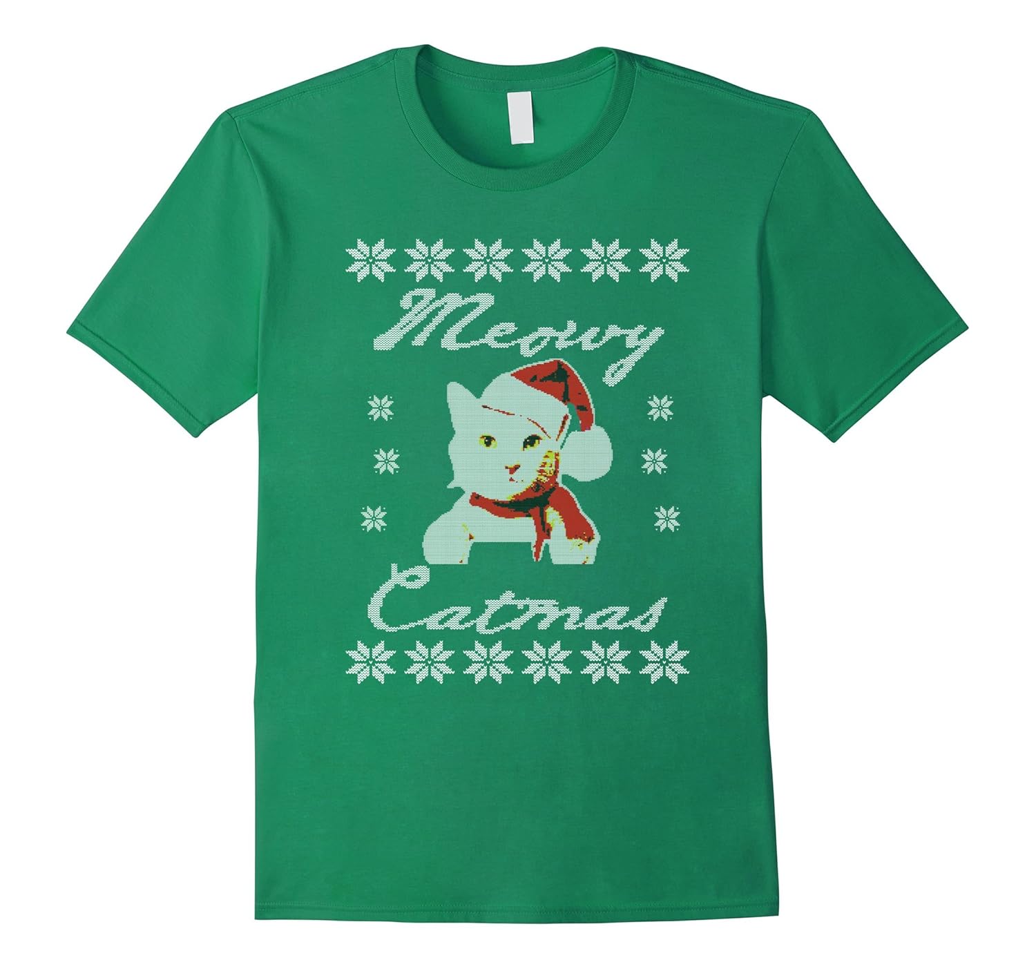 Funny Christmas Cat Ugly Sweater Meowy Catmas Gift T-Shirt-ANZ
