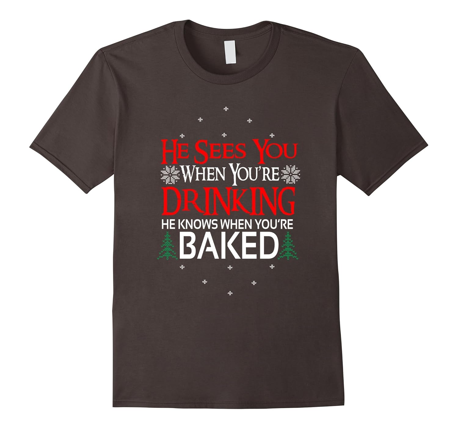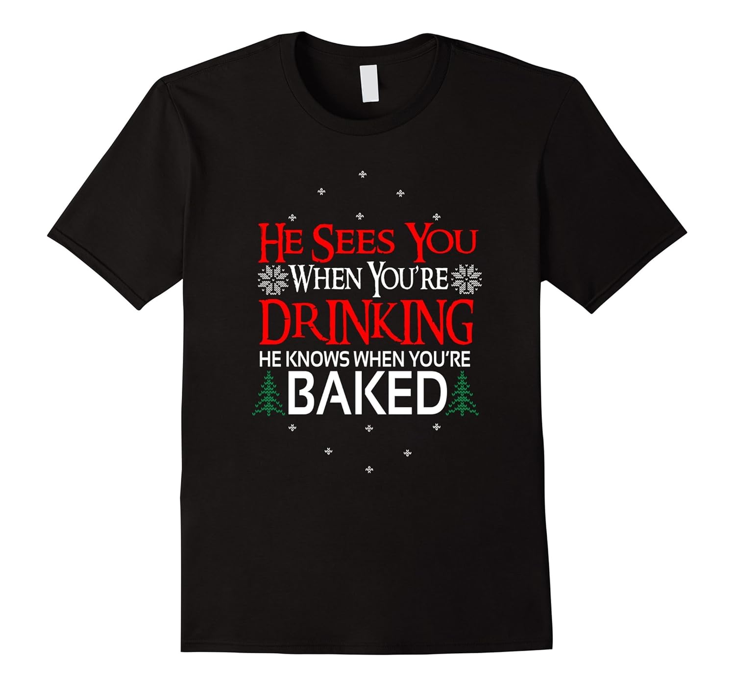 Be the first to review “Funny Christmas Drinking T Shirt He Sees you When you’re-ANZ”
