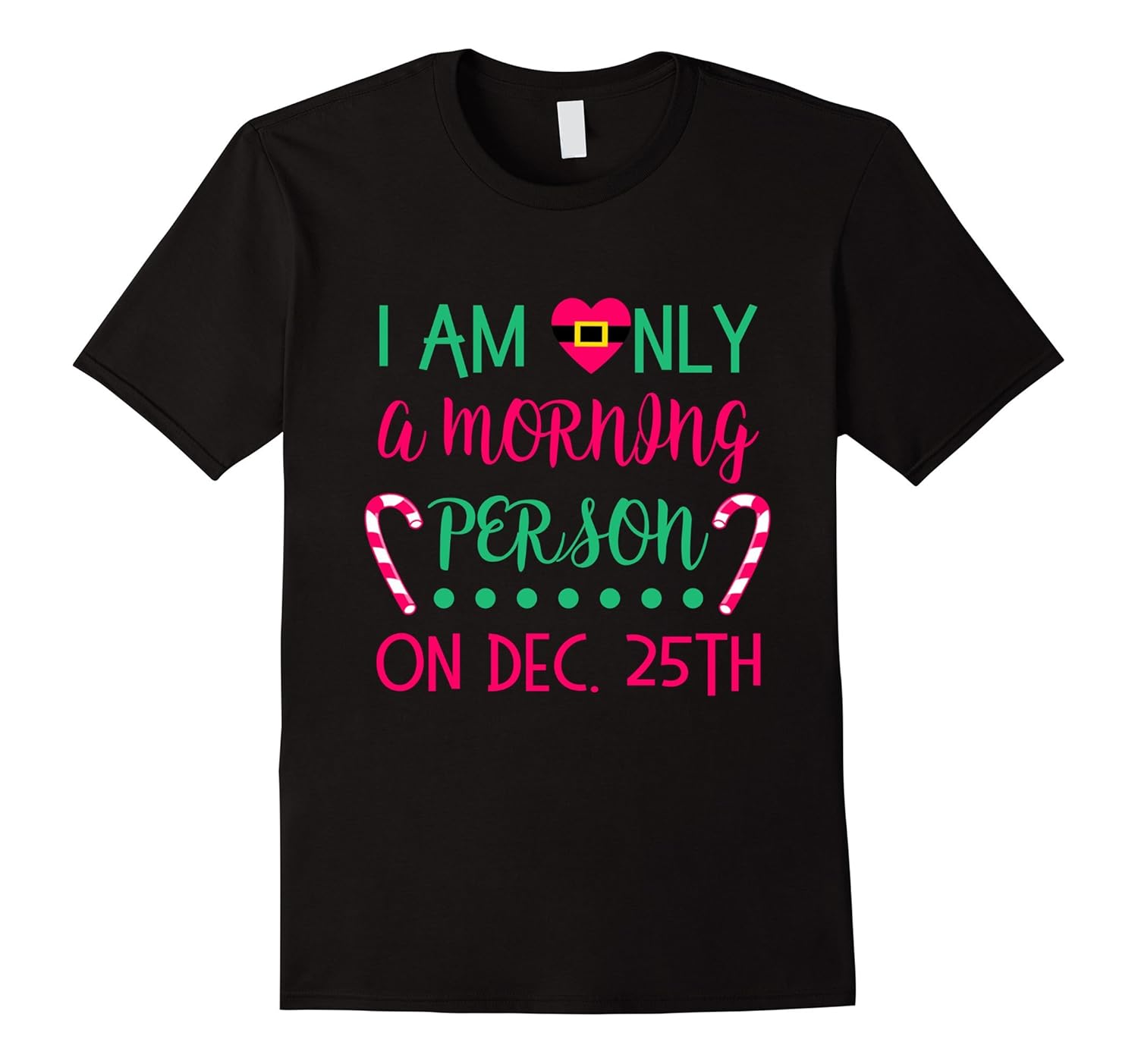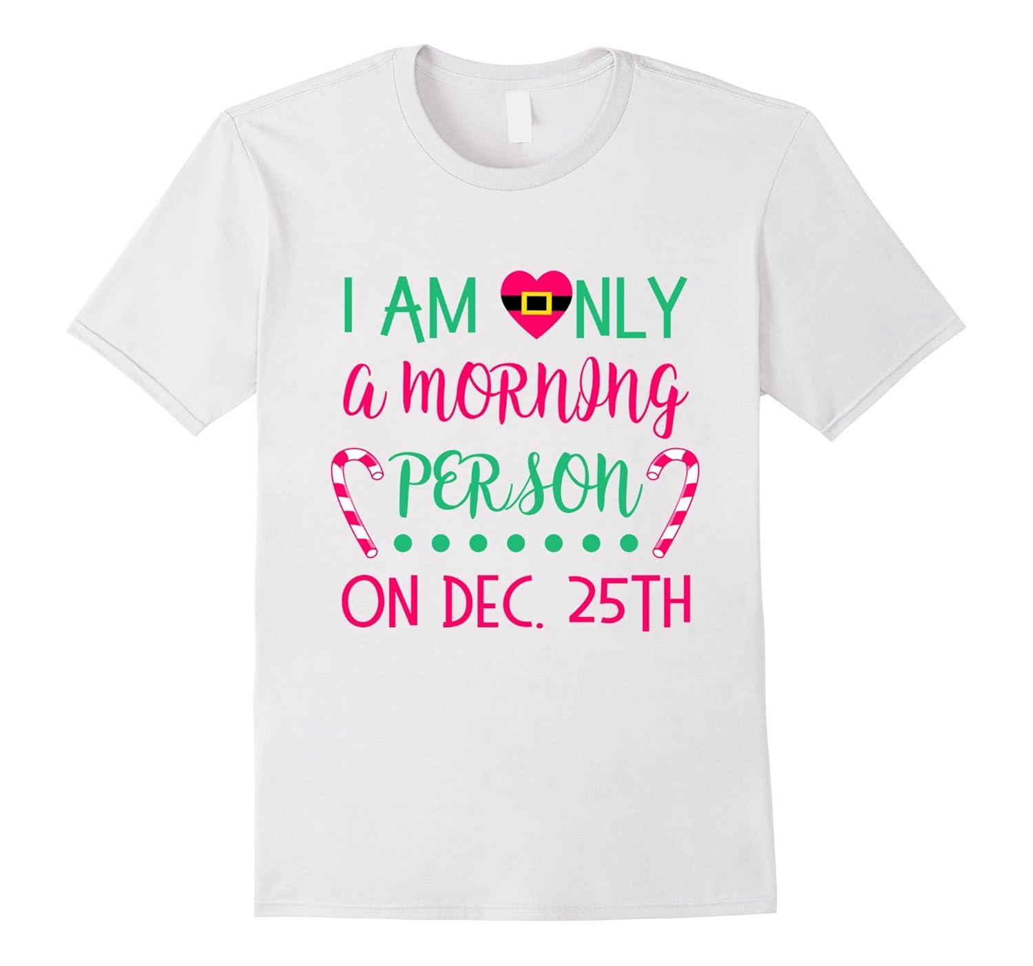 Solid colors: 100% Cotton; Heather Grey: 90% Cotton, 10% Polyester; All Other Heathers: 65% Cotton, 35% Polyester; Imported; Machine wash cold with like colors, dry low heat; Funny and cute xmas present outfit shirt with Santa costume shirt of buckle belt, peppermint candy cane, hot pink heart saying I am only a morning person on Dec 25th is perfect for toddler, little girls of kindergarten, preschooler, tween, teenager, mom.; Cool gift idea along with advent calendar for Christmas holiday season, New Years day, birthday, Sunday when you want to be lazy, pajama or slumber party, school graduation, Thanksgiving, Christmas countdown.; Lightweight, Classic fit, Double-needle sleeve and bottom hem